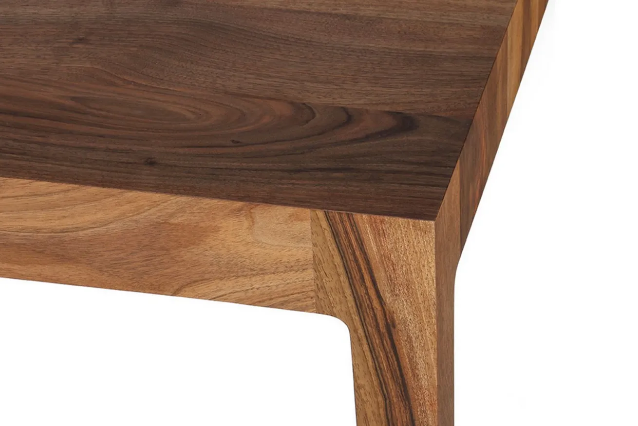 Das sehr begehrte Möbelholz, nämlich die europäische Nuss, haben wir verwendet, um aus diesem einen kompletten Tisch herzustellen. Mit den Maßen Breite 80cm, Tiefe 120 und Höhe 76cm eignet sich der Tisch aus Holz perfekt nicht nur ins Esszimmer, sondern auch als Schreibtisch im Arbeitszimmer. Das Massivholzmöbel hat eine geölte Oberfläche und vier Beine. Das mittelschwere-schwere Produkt hat eine sehr besondere Maserung und lässt sich mit einem trockenen Tuch reinigen.