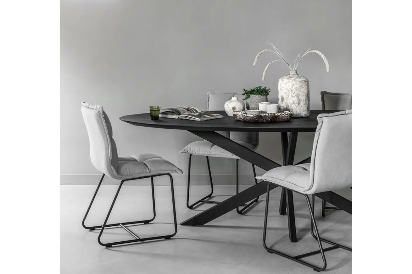 Tauchen Sie ein in die Welt des anspruchsvollen Designs und der nachhaltigen Eleganz mit unserem bemerkenswerten ovalen Esstisch. Dieser Esstisch vereint die Schönheit von recyceltem, schwarzem Teakholz und modernem Stil auf faszinierende Weise. Er wird nicht nur zum Mittelpunkt Ihrer Mahlzeiten, sondern auch zur Aussage über Ihr Verständnis von Ästhetik und Umweltbewusstsein.