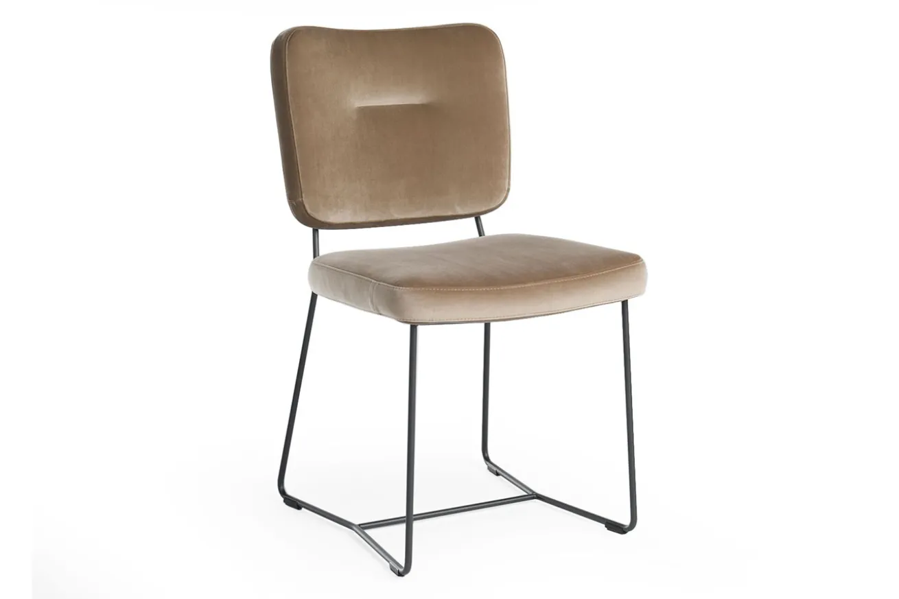 Das hier ist ein zierlicher Esszimmerstuhl ohne Armlehnen, der sich jederzeit auch in der Küche am Küchentisch einsetzen lässt. Kiko hat eine Breite von 49cm, eine Höhe von 89cm und eine Tiefe von 61cm. Lehne und Sitzfläche, die nicht durchgängig miteinander verbunden sind, bestehen aus hellbraunem Stoff. Sie werden von einem anthrazitfarbenem Metallgestell mit vier Füßen getragen. Durch diese besondere Farbgebung erhält der Stuhl eine außergewöhnlich schöne Retro-Optik. Egal, ob in Küche oder am Schreibtisch, der elegant aussehende Stuhl macht nicht nur optisch was her, sondern bereitet seinen Besitzern auf lange Zeit viel Freude.