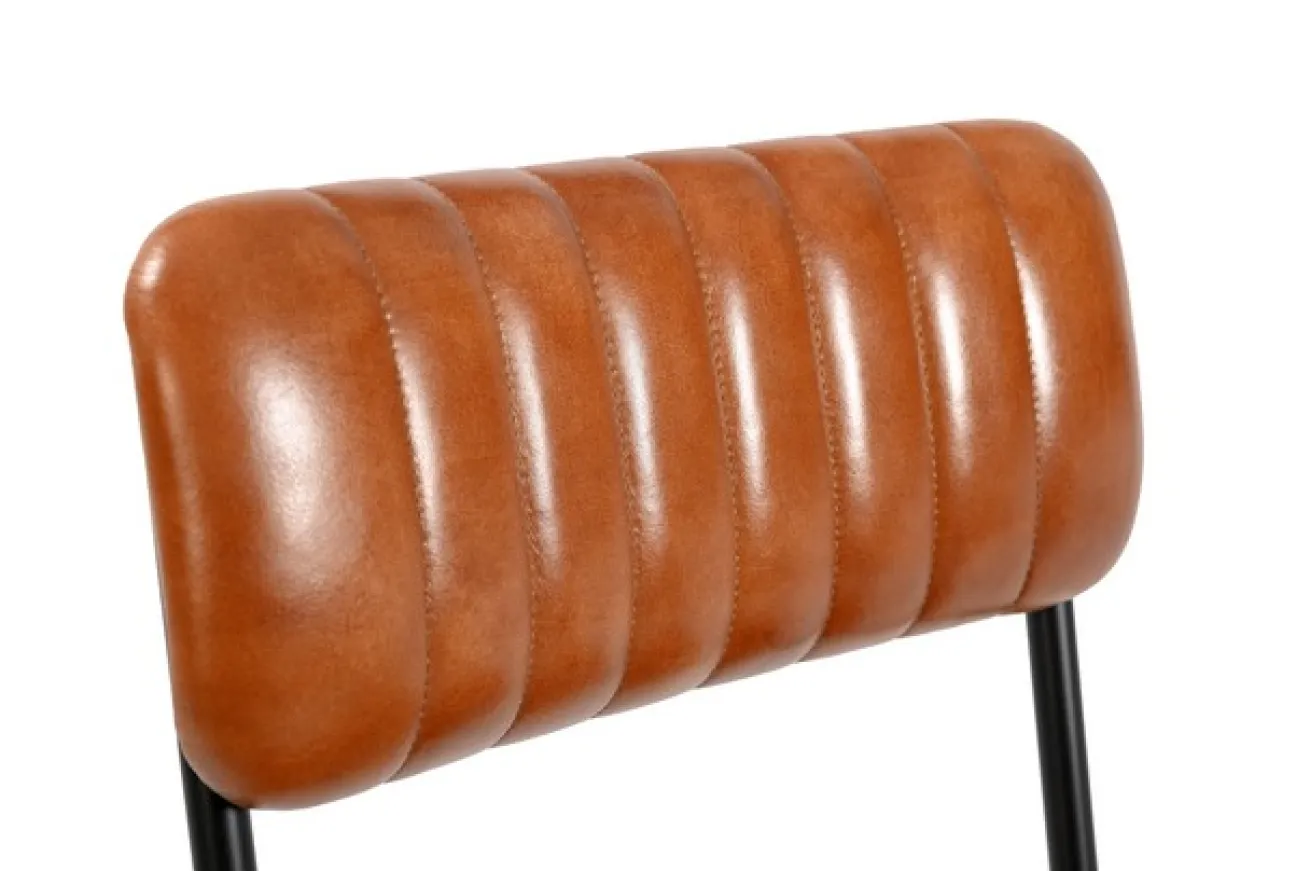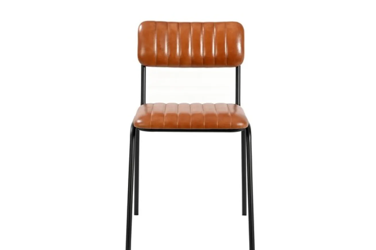 Lederstuhl, Retro Look, Sitzschale Leder braun, Beine Metal schwarz