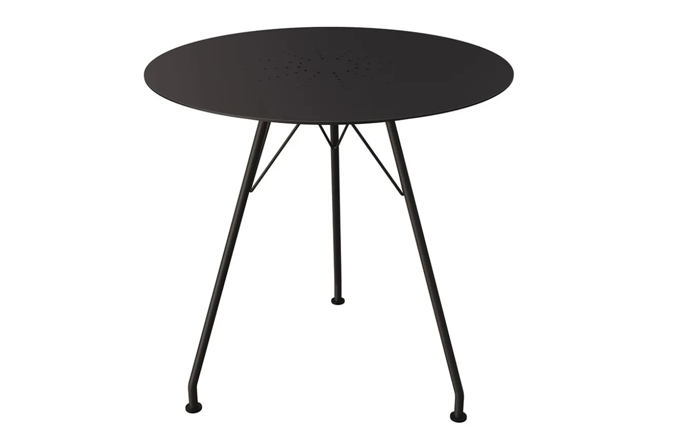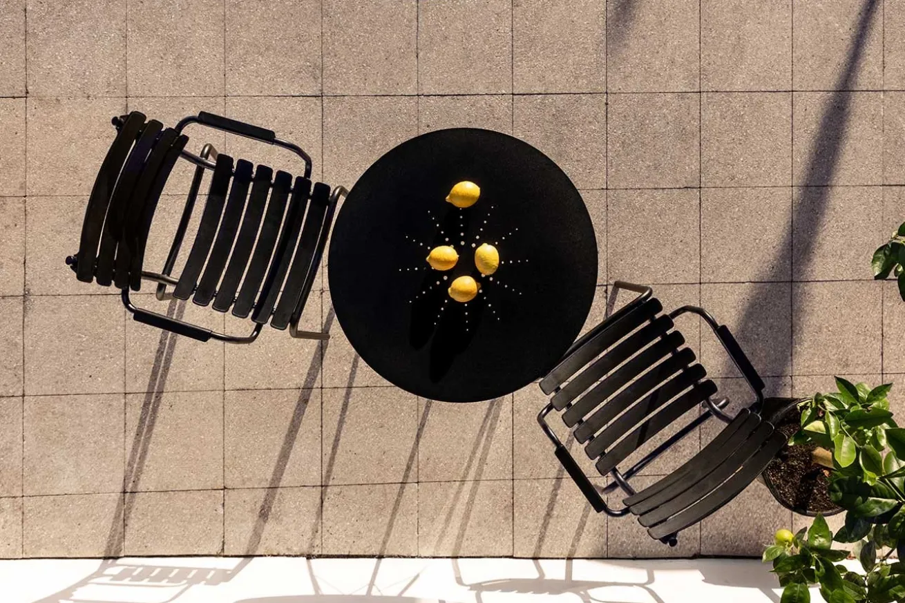 Der moderne Gartentisch „Circum“ des dänischen Designers Houe ist aus schwarz pulverbeschichtetem Aluminium und besteht aus einer Tischplatte mit dem Durchmesser von 74cm und einer Höhe von ebenfalls 74cm. Getragen wird die runde Platte von drei schmalen Stahlfüßen, die unser Möbelstück nicht nur modern, sondern filigran und stilvoll aussehen lassen. Er bietet Platz für maximal 4 Personen und eignet sich nicht nur als Garten- oder Balkontisch, sondern auch als Platz in einem Bistro mit Stühlen aus dem gleichen Material. Très chic, oder? Auch wenn das Modell schwarz ist, können wir uns doch nach Paris träumen. Oder in ein sehr modernes, loftiges Ambiente.