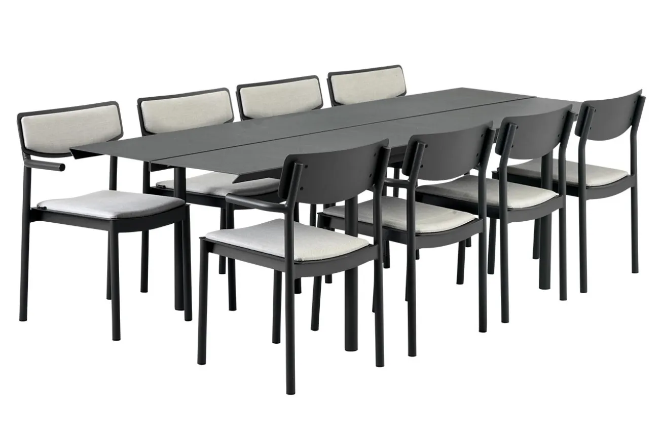 Unter der Woche erweist es sich oftmals als schwierig, das gute Wetter zu genießen, wenn man lange arbeitet. Hat man die Möglichkeit auf Home Office, kann man dieses problemlos nach draußen versetzen. Laptop, Maus, Kabel und alles, was man braucht, auch ein Glas Iced Coffee – das alles darf nicht fehlen, um den langen Tag zu überstehen und motiviert an seinen Projekten zu arbeiten. Hervorragend eignet sich dafür unser Outdoortisch B45 aus Aluminium in Mattschwarz. Ein modernes, neutral gehaltenes Möbelstück für den Garten, der ausreichend Platz für Co-Working bietet. Dank des geringen Gewichts lässt sich der Gartentisch dorthin stellen, wo am meisten Schatten ist. Genießen Sie die frische Brise in der Natur auf der Terrasse und nicht nur durchs Fenster. Dank der schmalen Füße haben Sie viel Platz für Stühle, so dass auch Unterlagen nicht nur ausgebreitet auf dem Tisch herumliegen müssen, sondern schön gestapelt auf ihren Gebrauch auf einem Stuhl ruhen können.