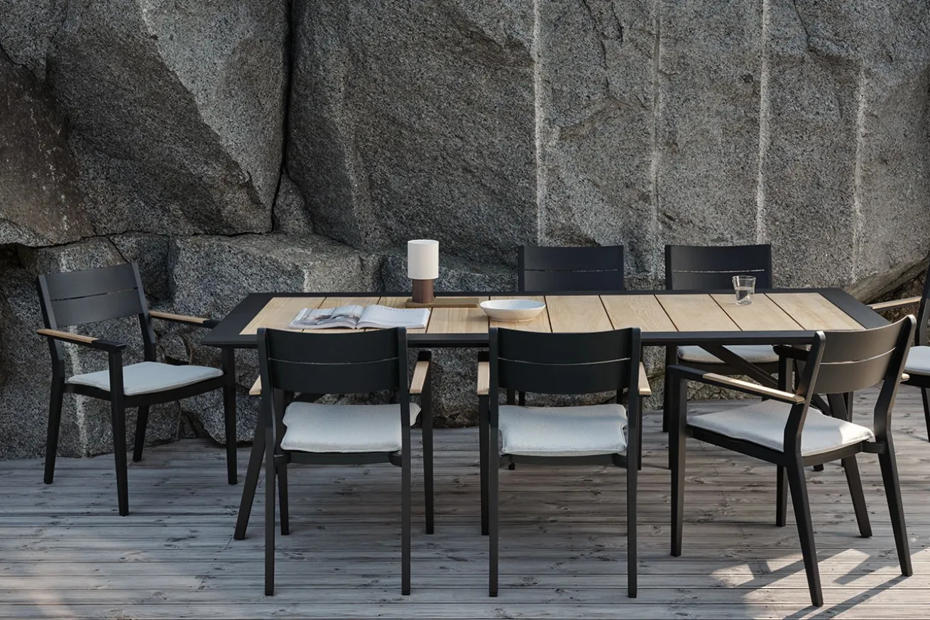 Kaffee und Kuchen lassen sich im Sommer gerne mal draußen degustieren – natürlich bei gutem Wetter versteht sich. Wie wäre es denn mit unserem Aluminiumtisch Chios, einer Kombination aus modern und natürlich, der sich durch seine Kombination aus schwarzem Aluminium und Teakholzleisten in der Platte auszeichnet? So einen rechteckigen Gartentisch hat nun wirklich nicht jeder. Dank seiner Füße sieht er wie ein Klapptisch aus, ist er aber nicht. Der Design-Gartentisch bietet genug Platz für alle Naschkatzen, die gerne Kuchen essen. Aber auch für Kaffee-Fans bietet Chios ausreichend Platz.