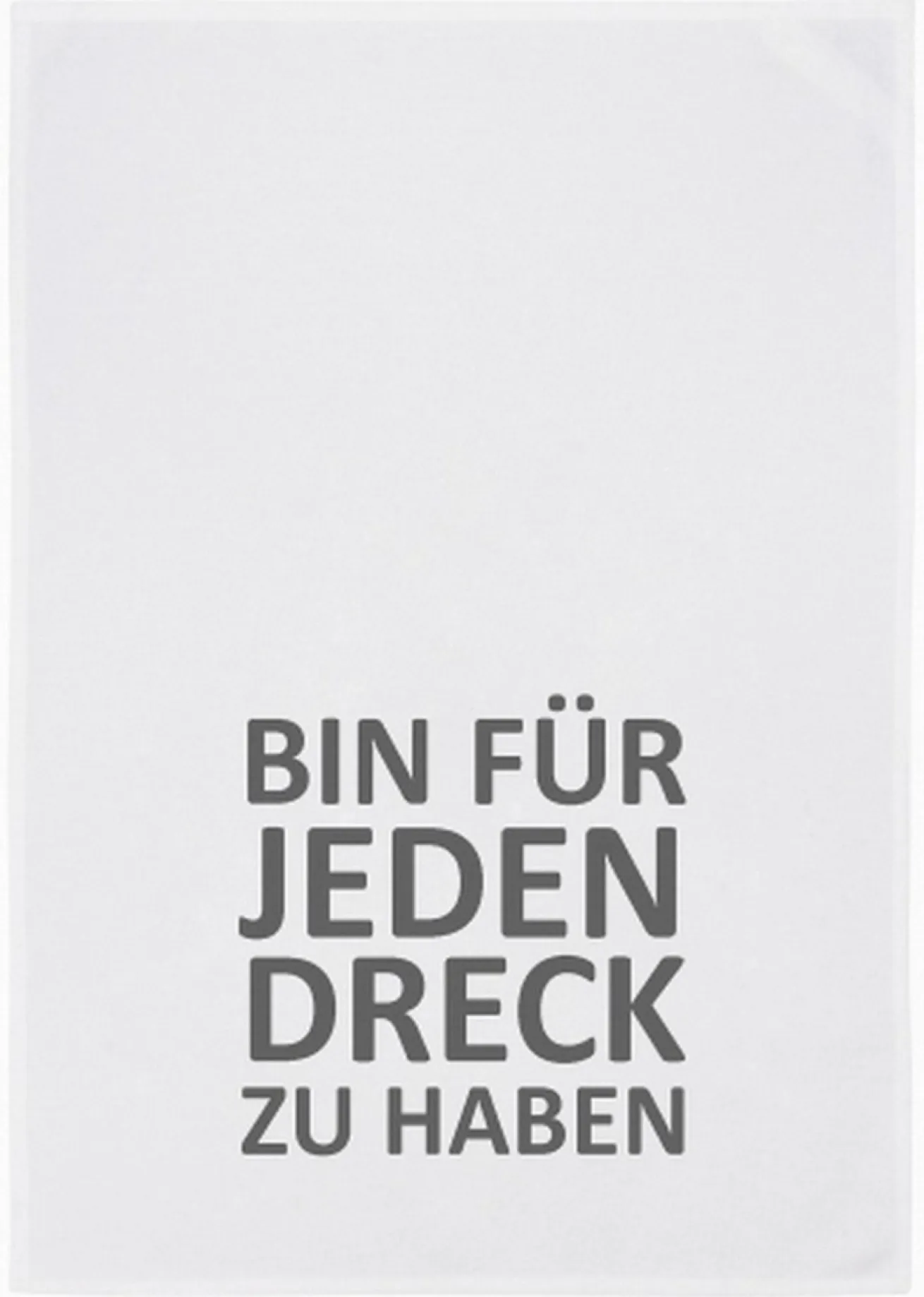 Wer keine Lust auf Abtrocknen hat, der muss einfach nur dieses Geschirrtuch in die Hand nehmen, denn dieses ist, wie es da drauf steht „für jeden Dreck zu haben“. Und das ist wortwörtlich gemeint. Das Handtuch für die Küche mit Siebdruck ist wahrscheinlich viel hilfreicher als viele Ihrer Helfer, die sich um Sie herumtummeln. Aber mit diesem Tuch werden sie garantiert wieder Freude am Abtrocknen von Geschirr und Töpfen haben.