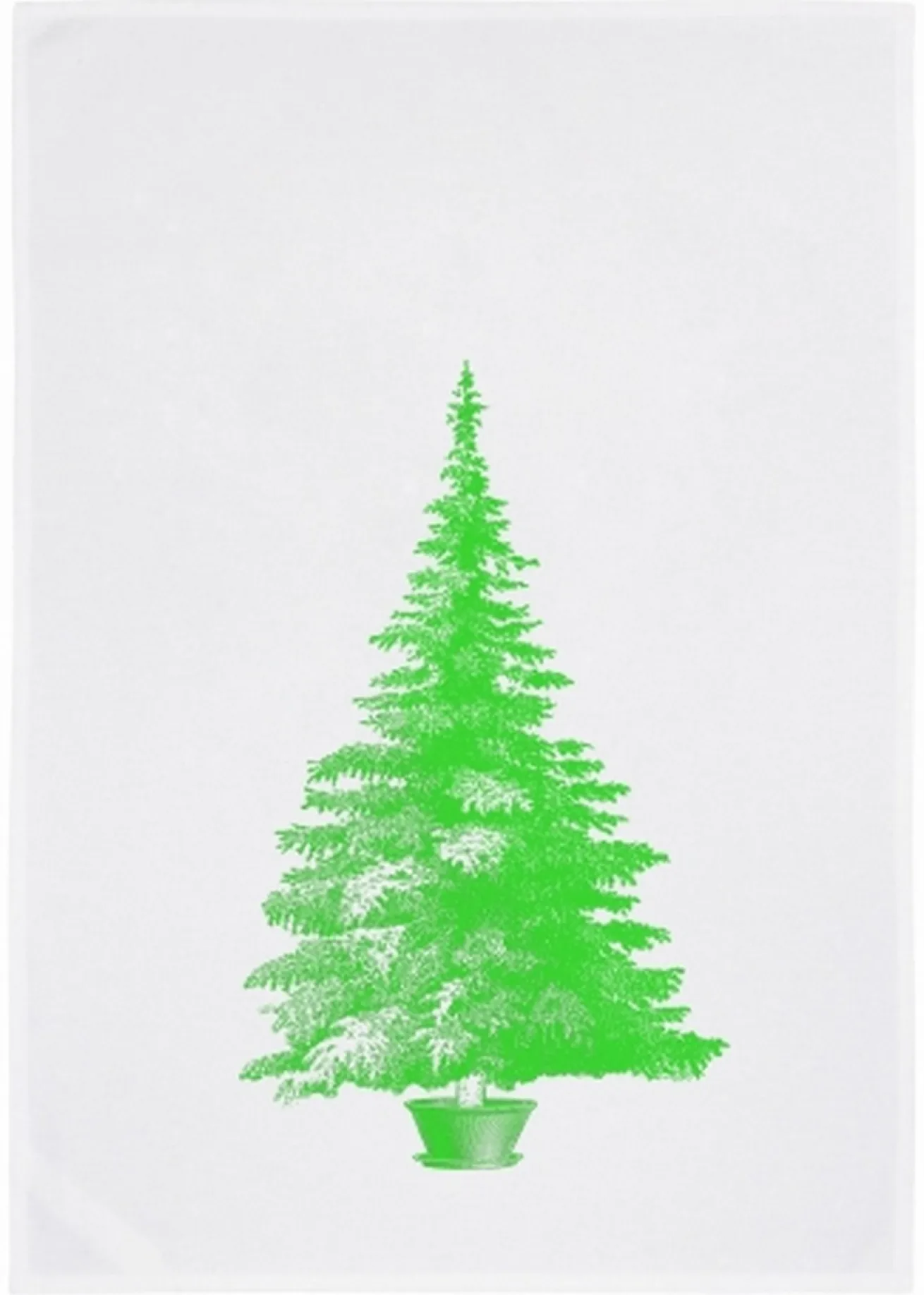 Witzige Geschirrhandtücher von dem Designer Brand 17:30 aus Hamburg. Dieses Handtuch hat eine Breite von 70cm und eine Tiefe von 50cm. Es besteht aus saugfähigem Baumwollstoff, sollte aber zum Trocknen aufgehängt werden. Weißer Hintergrund steht im Kontrast zur der neongrünen Farbe des Tannenbaums, der dank eines Siebdrucks auf diesem Geschirrtuch draufgedruckt wurde.