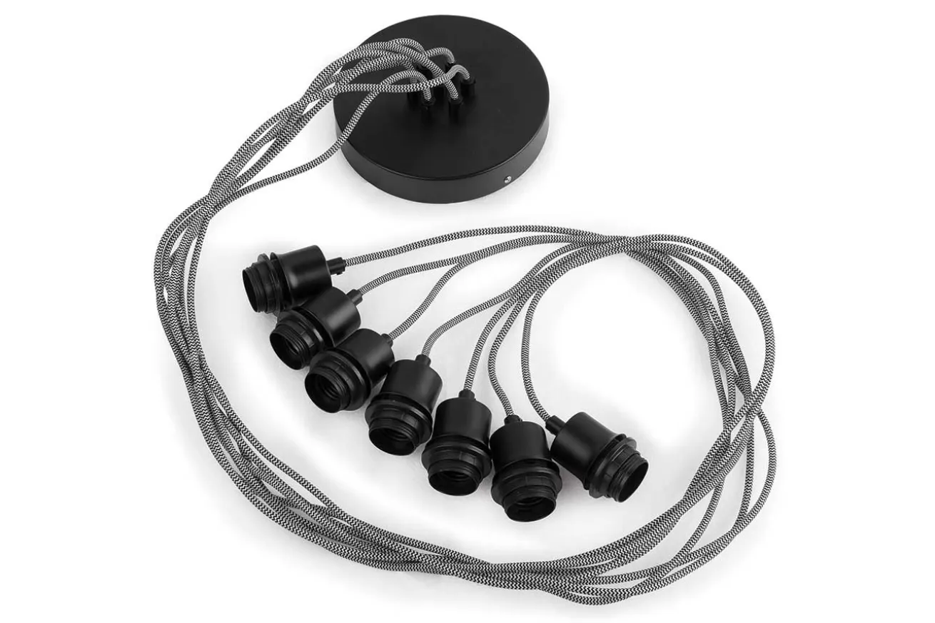 Nein, unsere Lampe hat nichts mit dieser Seite zu tun, wo man etwas kaufen kann. Vielleicht ist es auch eine Abkürzung für den Amazonas, wer weiß. Aber was wir wissen sind die Fakten zu dieser Pendelleuchte. Die 7 Lampenschirme bestehen aus schwarzen, recycelten Autoreifen. Sie haben einen Durchmesser von 15cm und eine Höhe von 16cm. So hat nicht nur eine Glühbirne die Chance, Ihnen Licht zu geben und den Tag zu erhellen, sondern gleich sieben Stück. Die Leuchtmittel sind NICHT in dem Produkt enthalten.