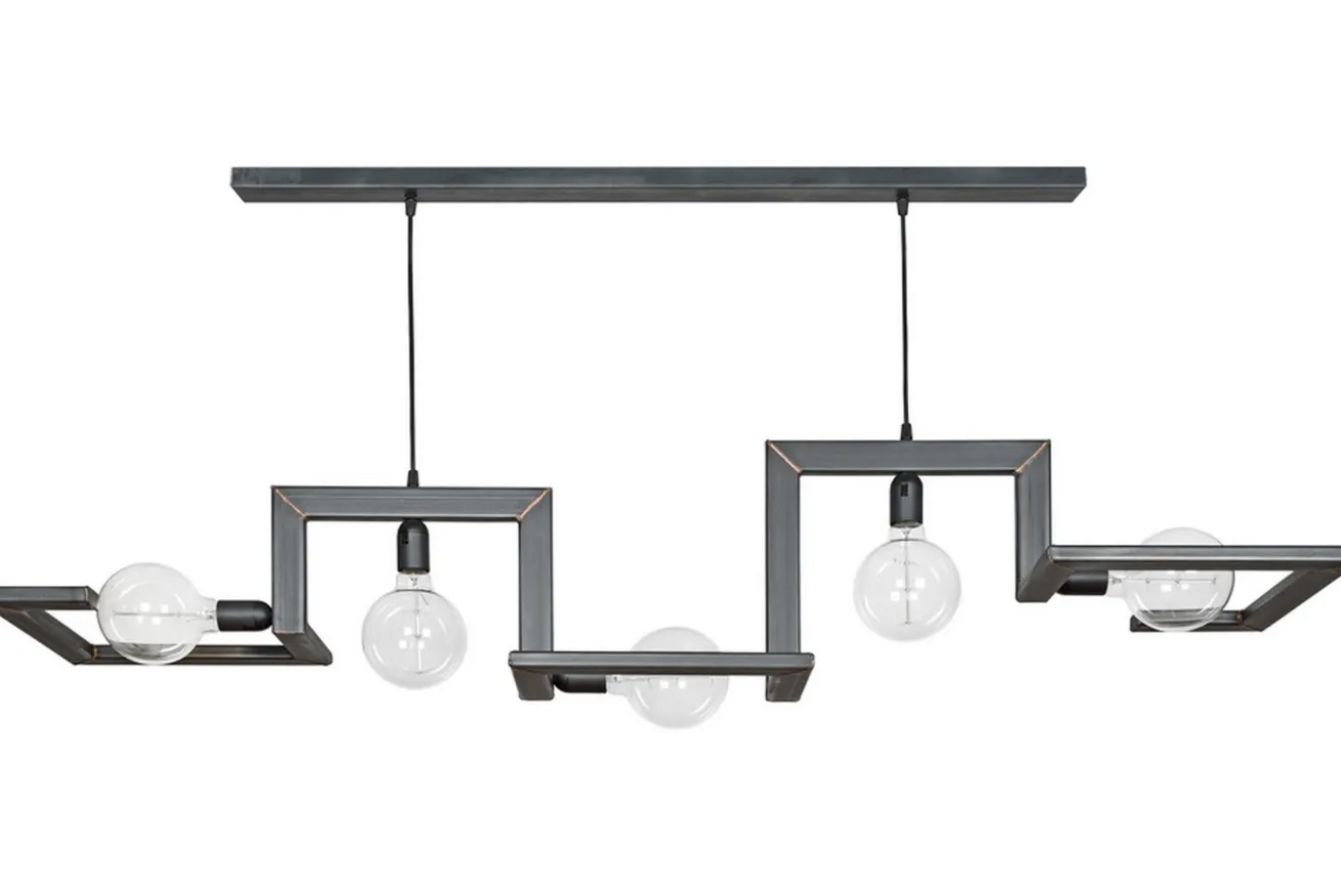 Mit dieser Pendelleuchte werden Lampenträume wahr. Naturfarbener Schwarzstahl, der in einer geometrischen Form angeordnet ist und gleich fünf Fassungen hat, ist ein wahrer Hingucker über dem Küchentisch. Oder aber im Wohnzimmer, das ebenfalls im Industrial Look eingerichtet ist. Mit einer Breite von 150cm sowie einer Höhe und Tiefe von je 30cm leuchtet Tortona nahezu jeden Raum aus. Wagen Sie auch einen Stilbruch, indem Sie die Leuchte in ein Esszimmer im rustikalen Stil hängen. Wir garantieren, dass diese Konstellation zu einem richtigen Eyecatcher wird.