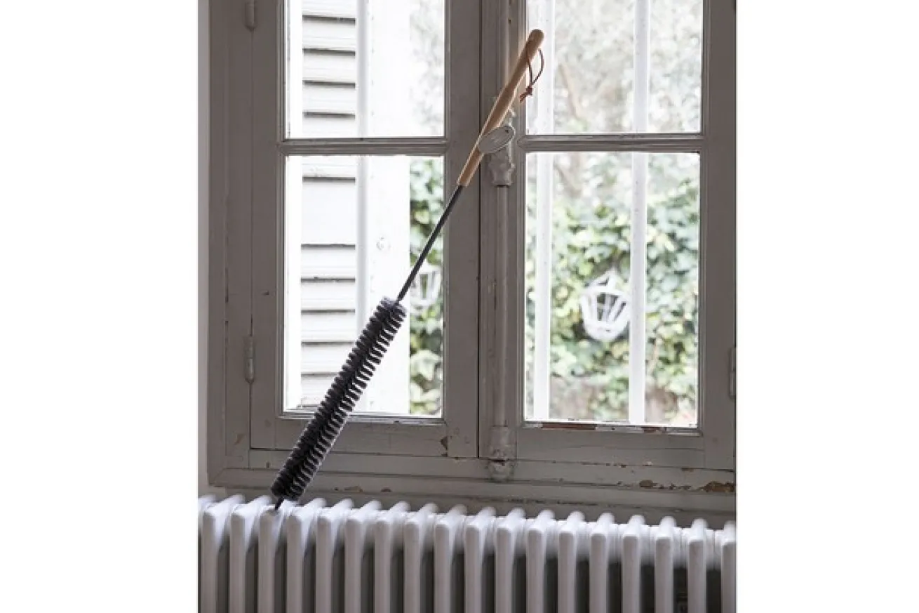 Zuhause sollten nicht nur die Oberflächen von Schränken und Regalen gereinigt werden, sondern auch diverse Zwischenräume wie die der Heizung. Um sich Ärger zu ersparen, dürfen Sie diese Bürste, die extra für Heizkörper kreiert wurde, nutzen. Sie passt perfekt in die Zwischenräume und entfernt jeglichen Schmutz, an den Sie sonst nicht kommen würden. Dank des flexiblen Metallstabs ist das möglich. Mit einer Höhe von 85cm gelangen Sie auch an die tiefsten Stellen. Dank des naturfarbenen Holzgriffs können Sie sicher sein, dass er allen nötigen Putzaktionen Stand halten wird. Die Bürste besteht aus grauem Ziegenhaar, das staubbindende Eigenschaften hat. Zusammengesetzt zu dieser Heizkörperbürste, die im natürlichen Design nicht nur langanhaltend ist, sondern vor allem hochwertig erscheint, erhalten Sie ein in Frankreich handgefertigtes Haushaltsutensil, das Sie jahrelang begleiten wird.