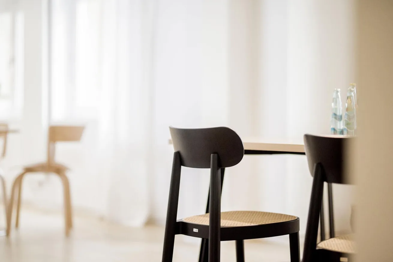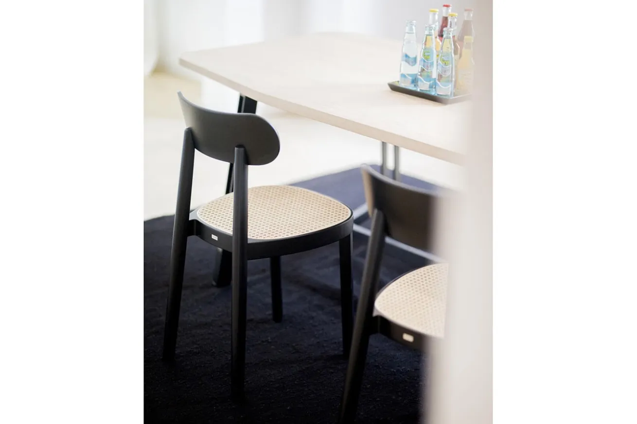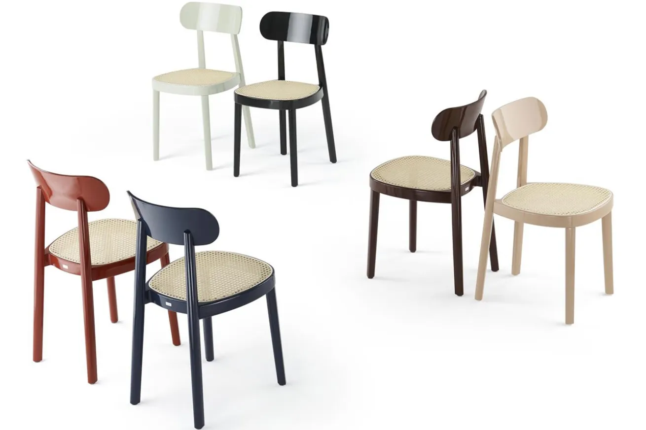 Minimalistisch und ehrlich, dabei elegant und filigran: Der 118 ist ein klassischer Holzstuhl, der an jedem Esstisch, in jedem Restaurant für subtile Eleganz sorgt. Das Prinzip, einen Stuhl auf möglichst wenige Bestandteile zu reduzieren, wurde von Michael Thonet bereits Mitte des 19. Jahrhunderts eingeführt. Der Stuhl 118 ist eine Weiterentwicklung, welche das Erbe des Unternehmens bedenkt – und noch einen Schritt weiter geht. Sebastian Herkner ergänzt raffinierte Details, die den Entwurf weniger dominant, dafür umso vornehmer machen. Eine weitere Besonderheit stellt die Form der Stuhlbeine dar: Auf ihrer Außenseite sind sie gerundet, auf der Innenseite gerade – eine Gestalt, die die hufeisenförmige Grundfläche des Sitzes aufnimmt. Auf den Urtyp eines Thonet-Bugholzstuhls, den 214, beziehen sich der aus einem Stück gebogene Sitzrahmen sowie die mit Rohrgeflecht bespannte, in Handarbeit verarbeitete Sitzfläche. Erweitert wird das Programm durch die Barhocker 118 H. Das Modell 118 FV ergänzt die Sitzmöbelfamilie als komfortabler, einladender Armlehnstuhl. Er präsentiert sich großzügiger und noch bequemer: Mit größerer Sitzfläche und breiterer, etwas stärker nach hinten geneigter Rückenlehne wurde er von Sebastian Herkner für das Fine Dining konzipiert.
