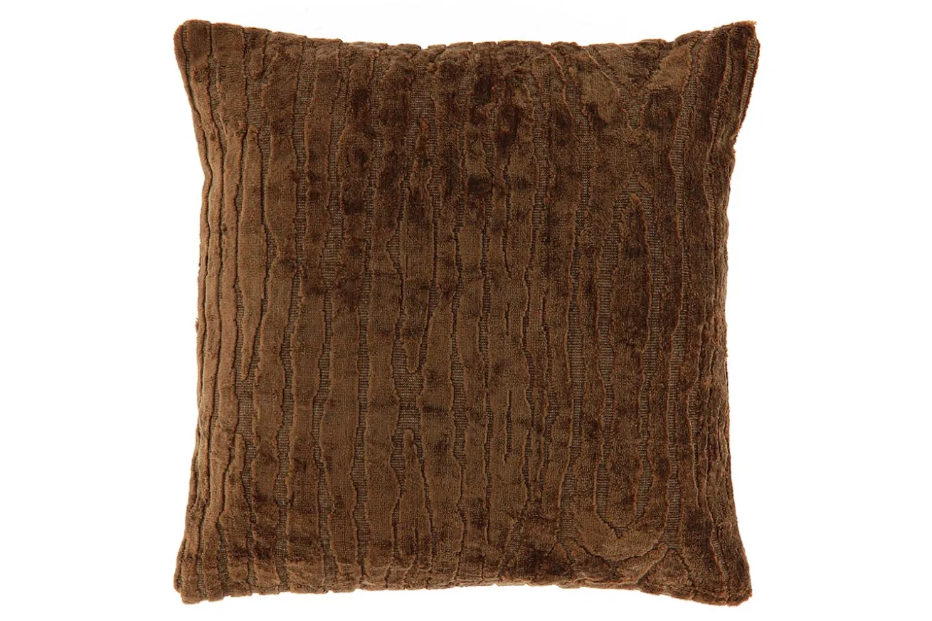 Ein großes Bett benötigt nicht nur passende Bettwäsche, sondern auch viele dekorative Kissen, die das Schlafgemach gemütlicher erscheinen lassen. Dovi, das dunkelbraune quadratische Kissen mit leichter Musterung, passt daher hervorragend.