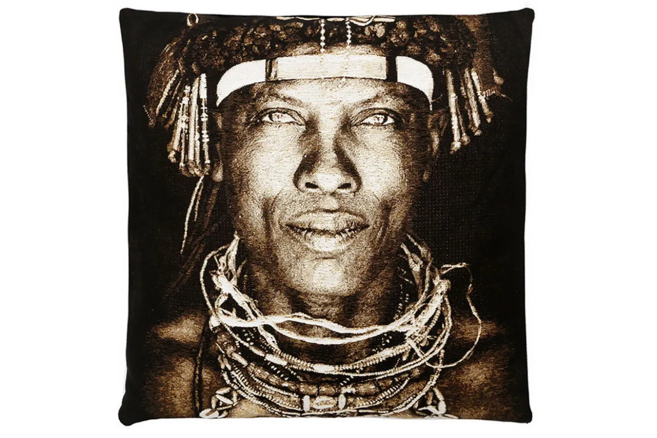 Dieses sepiafarbene Kissen zeigt einen angolesischen Mann. Das wohnliche Accessoire aus Baumwolle ist quadratisch und hat eine Breite sowie Tiefe von je 45cm. Weicher Stoff, der das Kissen nicht nur zur Dekoration macht, sondern dieses auch befähigt, sich an dieses kuscheln zu dürfen, was möchte man mehr?