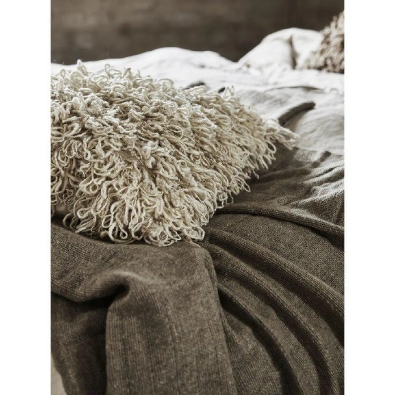 Der hohe Wollanteil sorgt für ein warmes, anschmiegsames Gefühl und macht Love zu einem vielseitigen Wohnaccessoire für Sofa, Sessel oder Bett. Die erdigen Farbtöne wirken ruhig und natürlich und fügen sich harmonisch in unterschiedliche Einrichtungsstile ein – von modern bis wohnlich-naturnah. Ideal, um Räumen eine entspannte und einladende Atmosphäre zu verleihen.