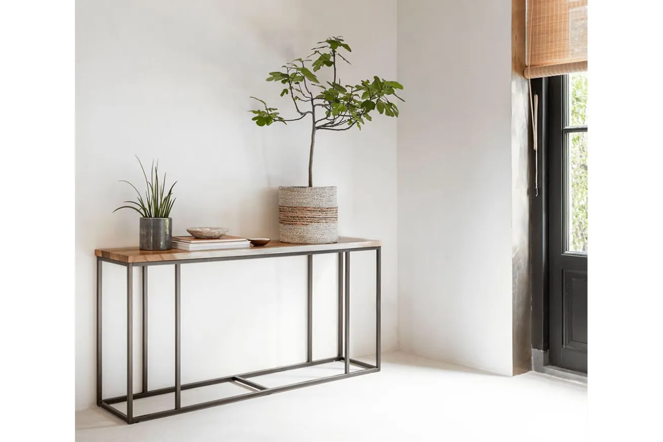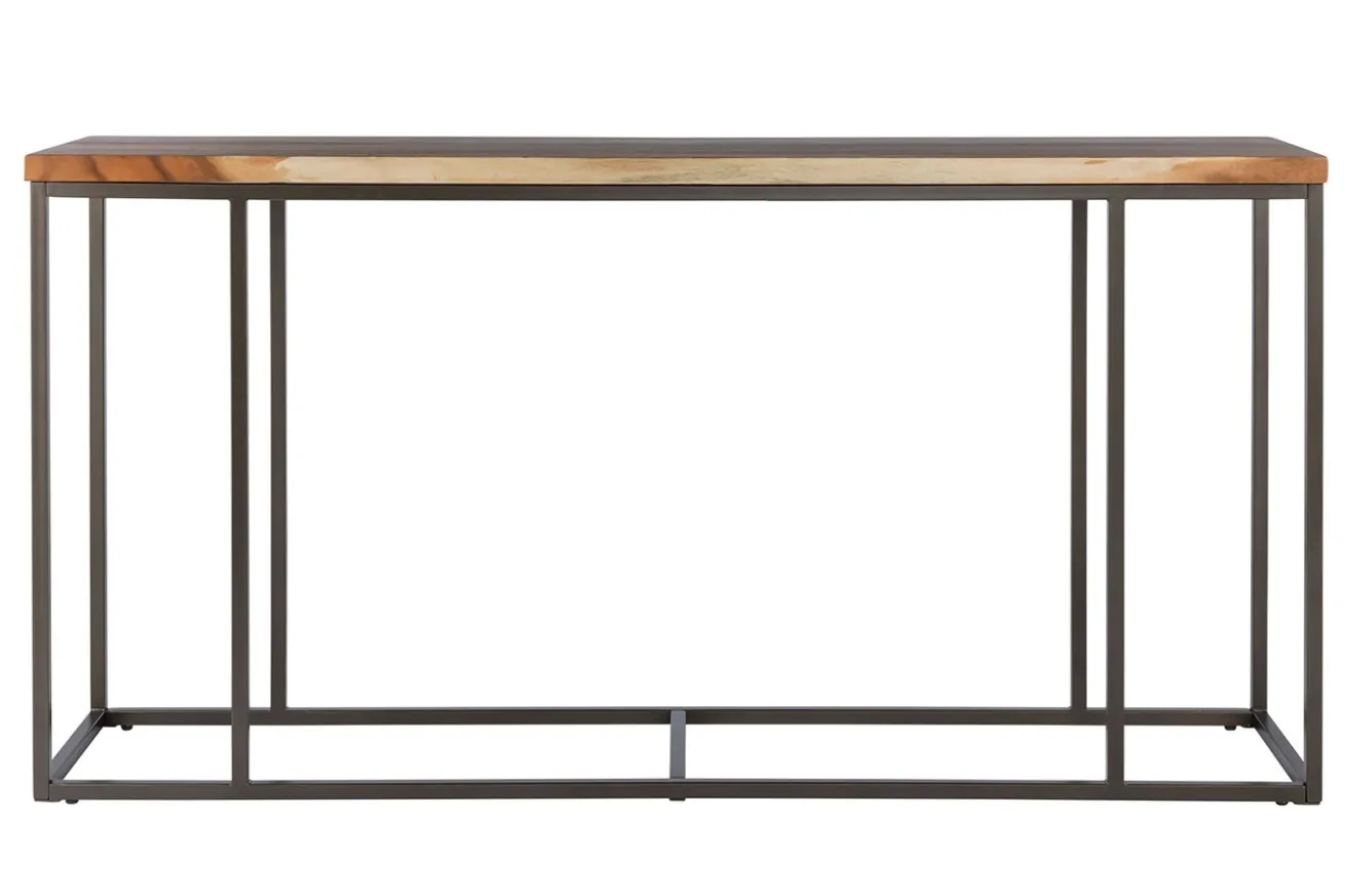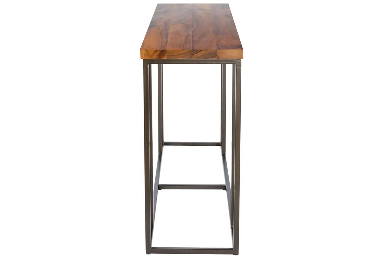 Die Konsolentischplatte aus naturfarbenem Suarholz strahlt eine einladende Aura aus und bringt die Wärme der Natur in jeden Raum. Jeder Tisch wurde sorgfältig ausgewählt, um die individuellen Maserungen und Farbtöne des Holzes zu unterstreichen, wodurch jeder Tisch zu einem einzigartigen Kunstwerk wird.