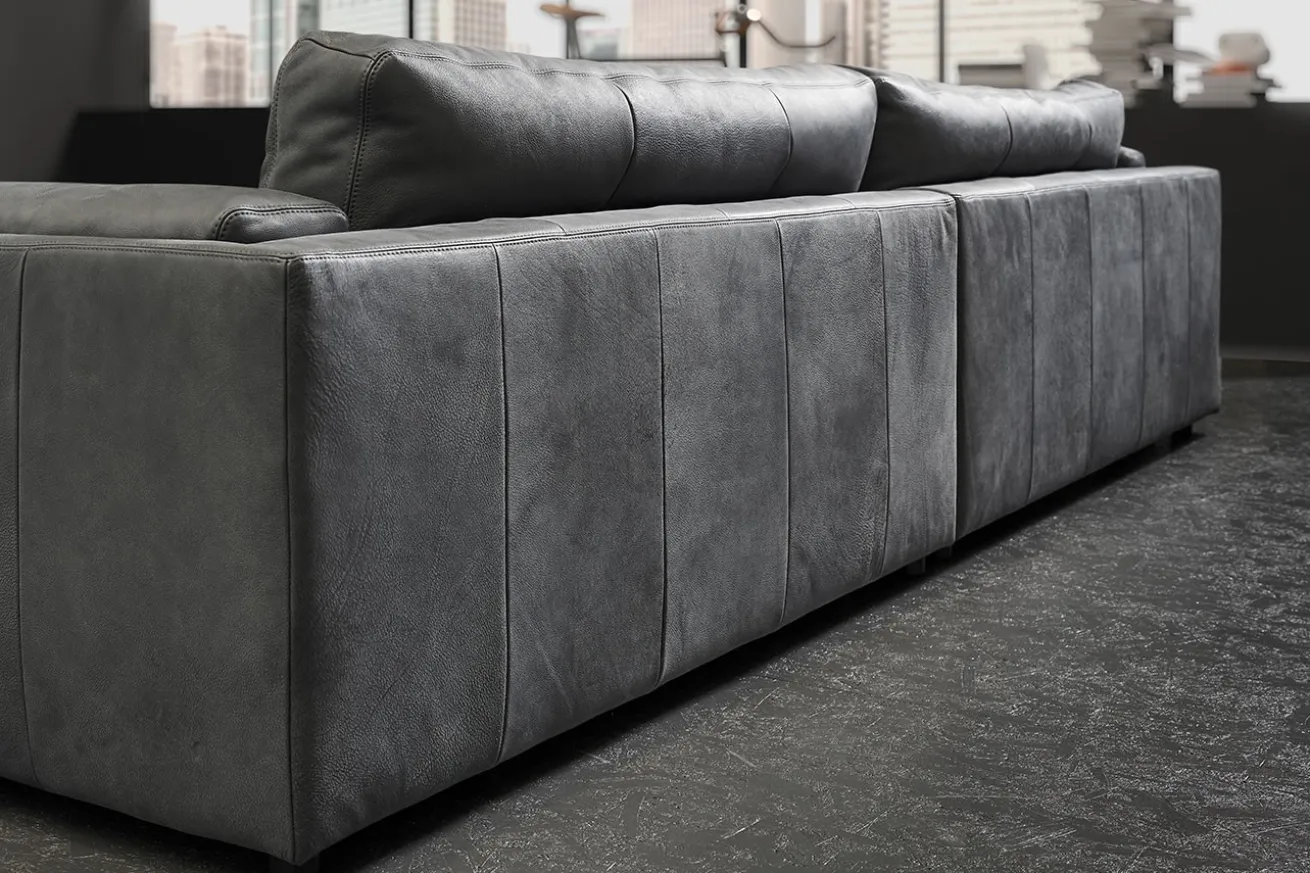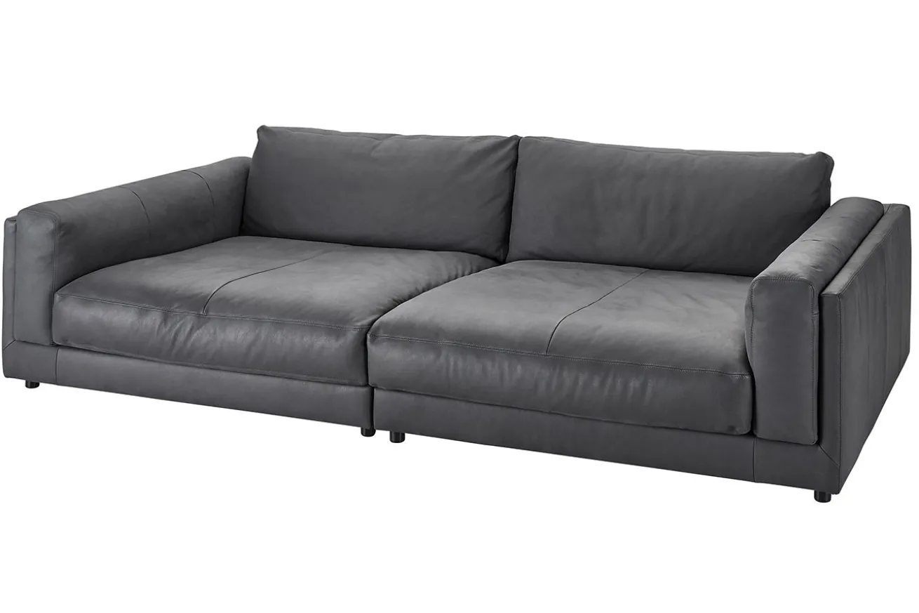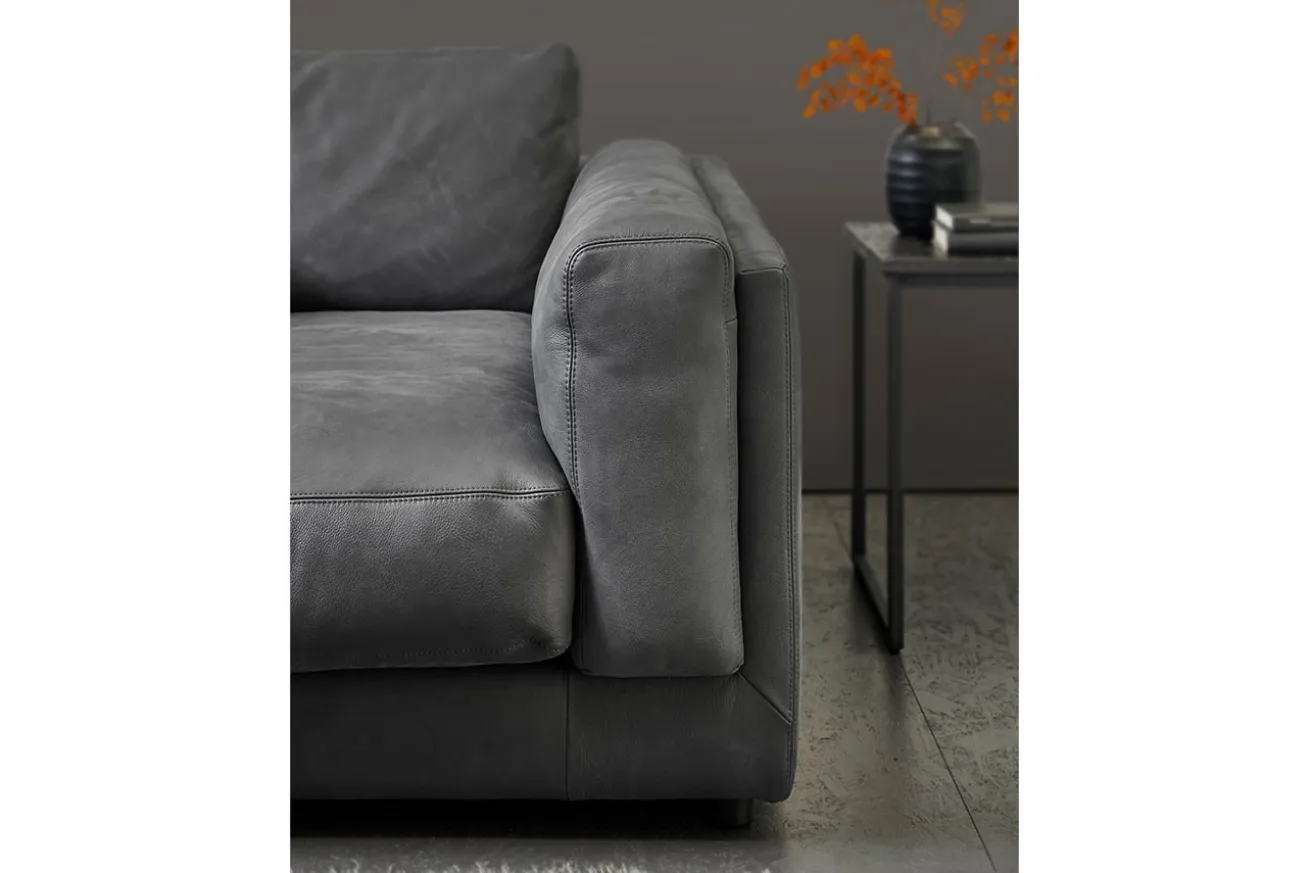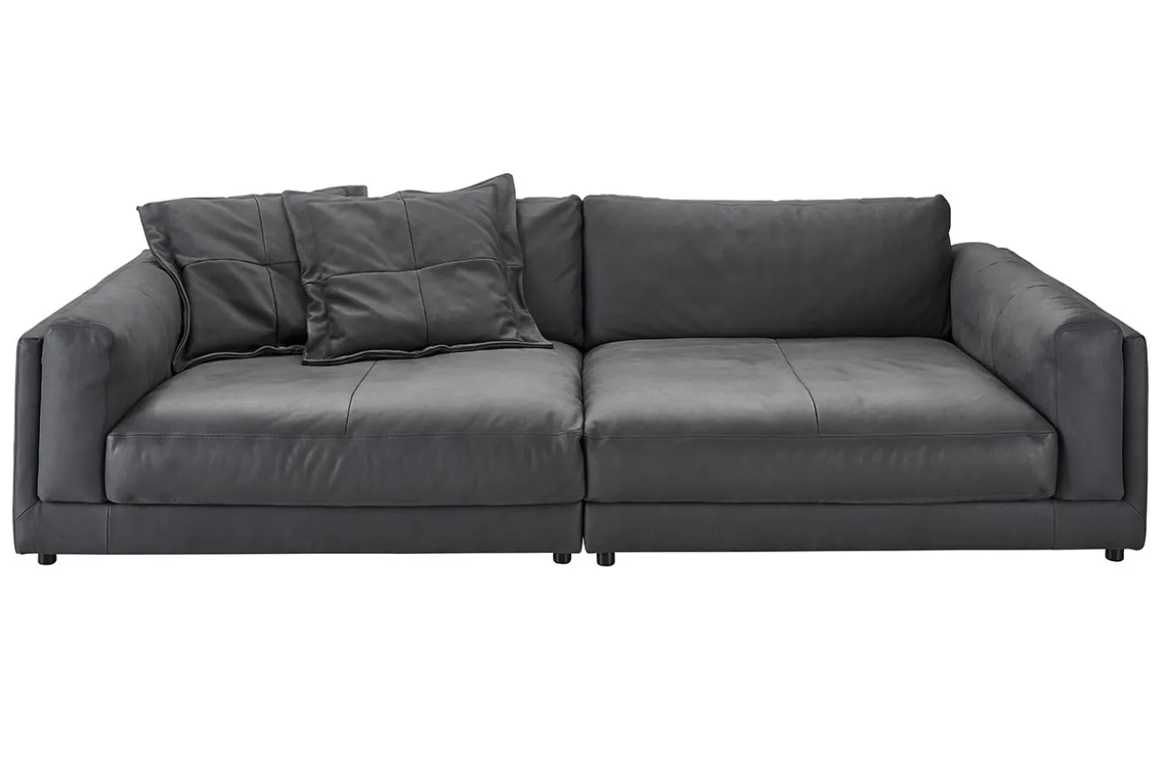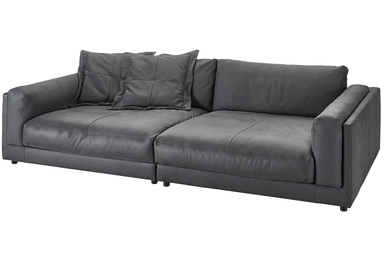 Das anthrazitfarbene Leder verleiht dem Sofa nicht nur eine markante Ausstrahlung, sondern punktet auch mit einer geschmeidigen Haptik. Die klaren Linien und die großzügige Sitzfläche schaffen eine moderne Ästhetik, die sich in jedem Raum als Blickfang präsentiert.