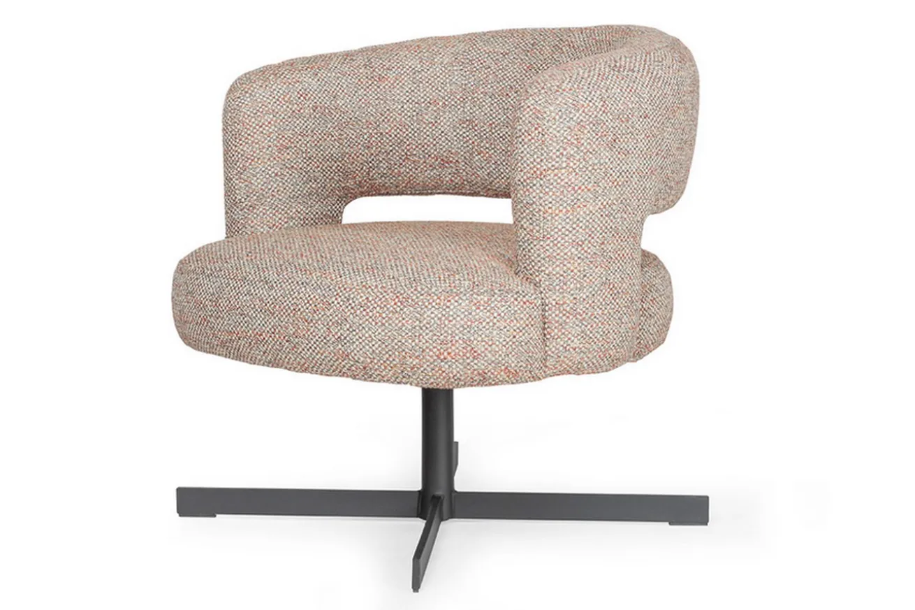 Erleben Sie den Wohntrend Low Dining – entspannt speisen auf stilvoller, niedriger Sitzhöhe. Dieser drehbare Loungesessel kombiniert modernen Komfort mit klassischer Eleganz. Der helle Tweedoptik-Bezug, durchzogen mit feinen Terrakotta- und Blaufäden, verleiht ihm eine edle, dezente Struktur mit besonderer Tiefe. Perfekt für stilvolle Low-Dining-Arrangements, aber auch als Solist in Ihrer Lounge oder Leseecke ein echter Hingucker.