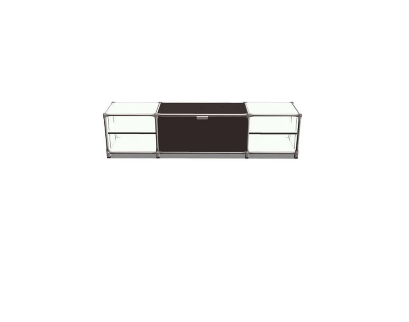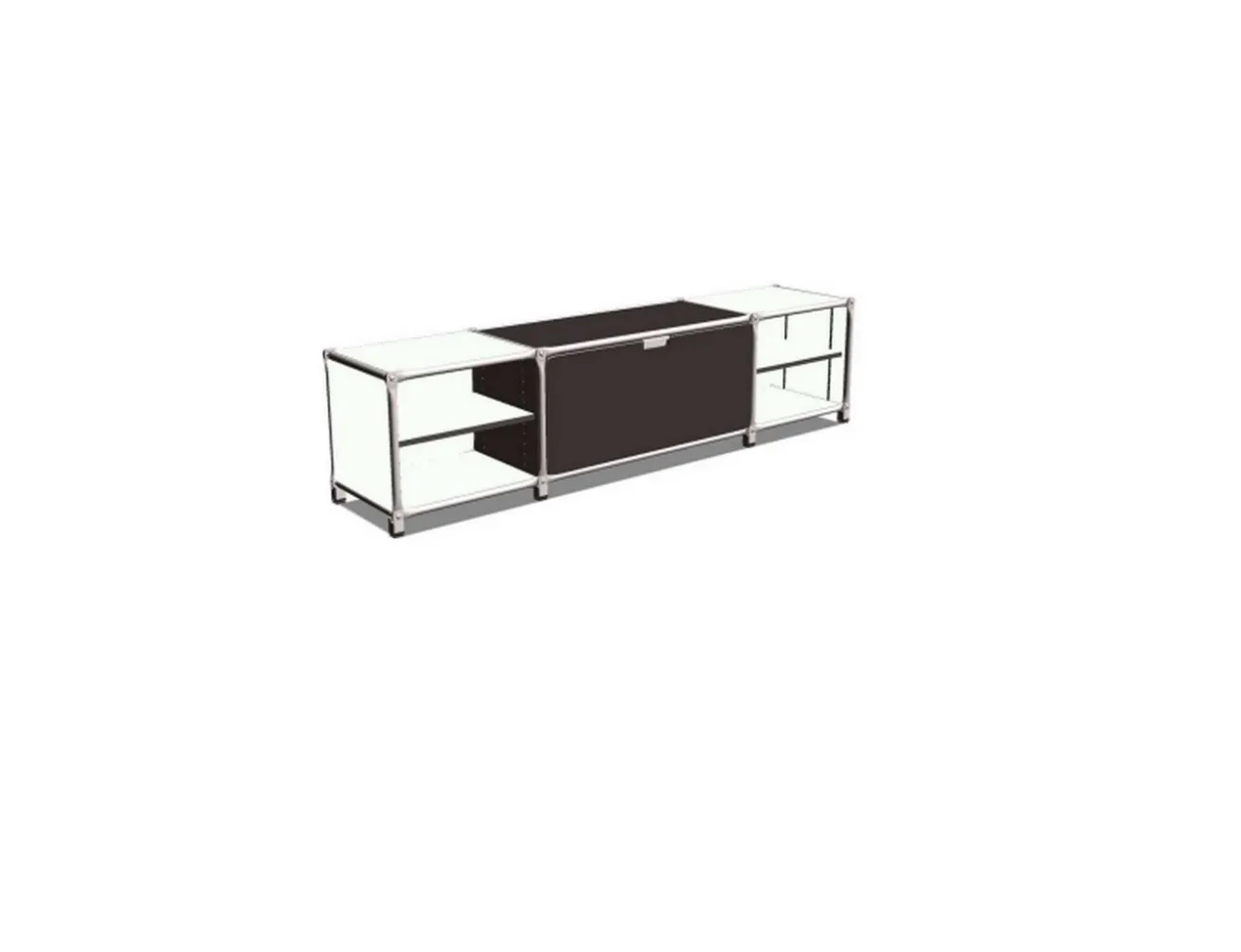 Das markante schwarz-weiße Finish verleiht Ihrem Wohnraum einen modernen Touch, während das Industrial-Design für eine robuste und dennoch raffinierte Ästhetik sorgt. Mit vier großzügigen Einlegeböden bietet dieses Lowboard reichlich Platz für Ihre Multimedia-Geräte, Bücher, Dekorationsgegenstände und mehr.