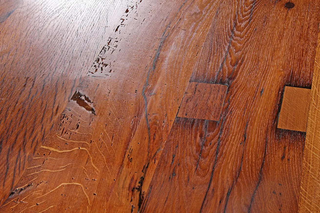 | Holzart | recycl. Scheunenholz aus Eichebohlen |