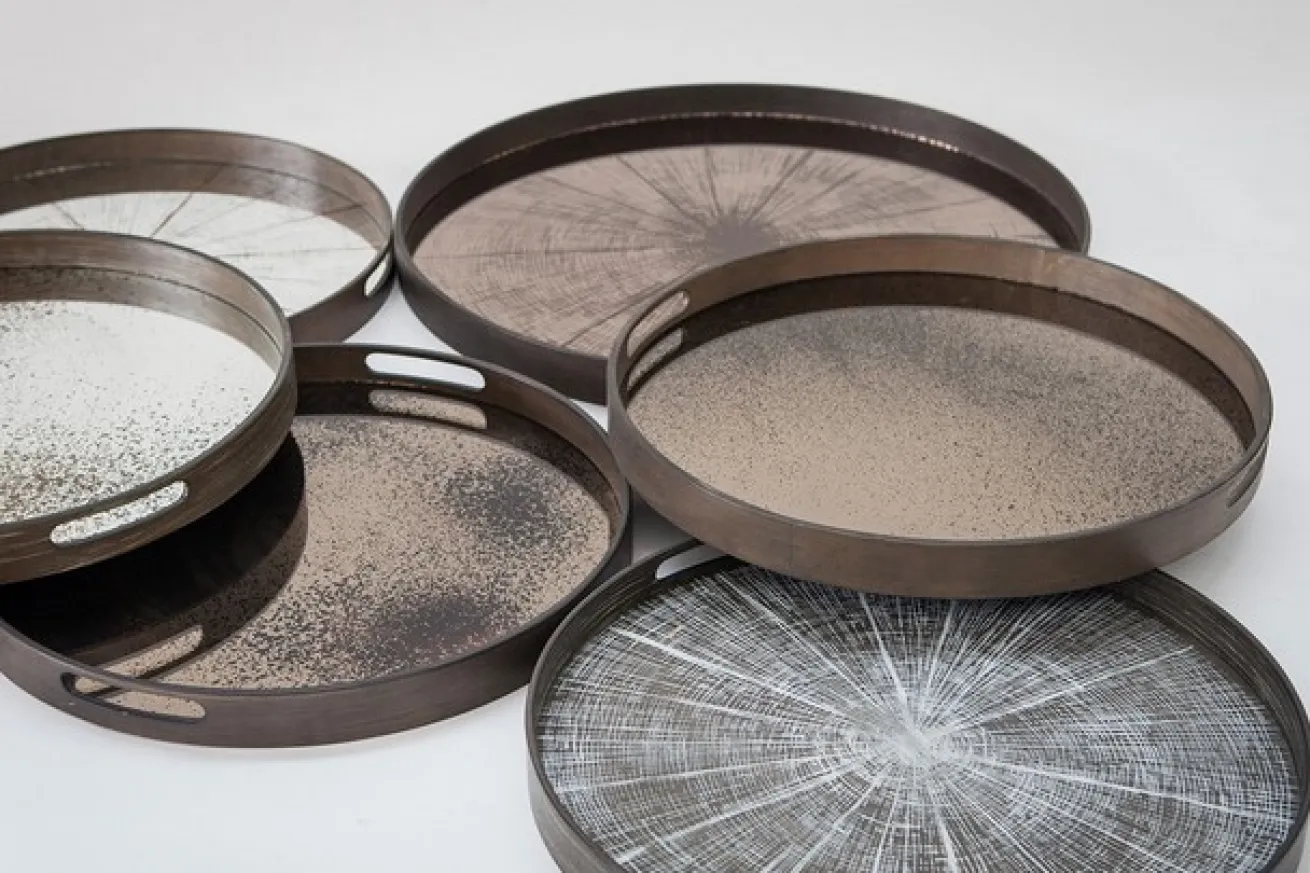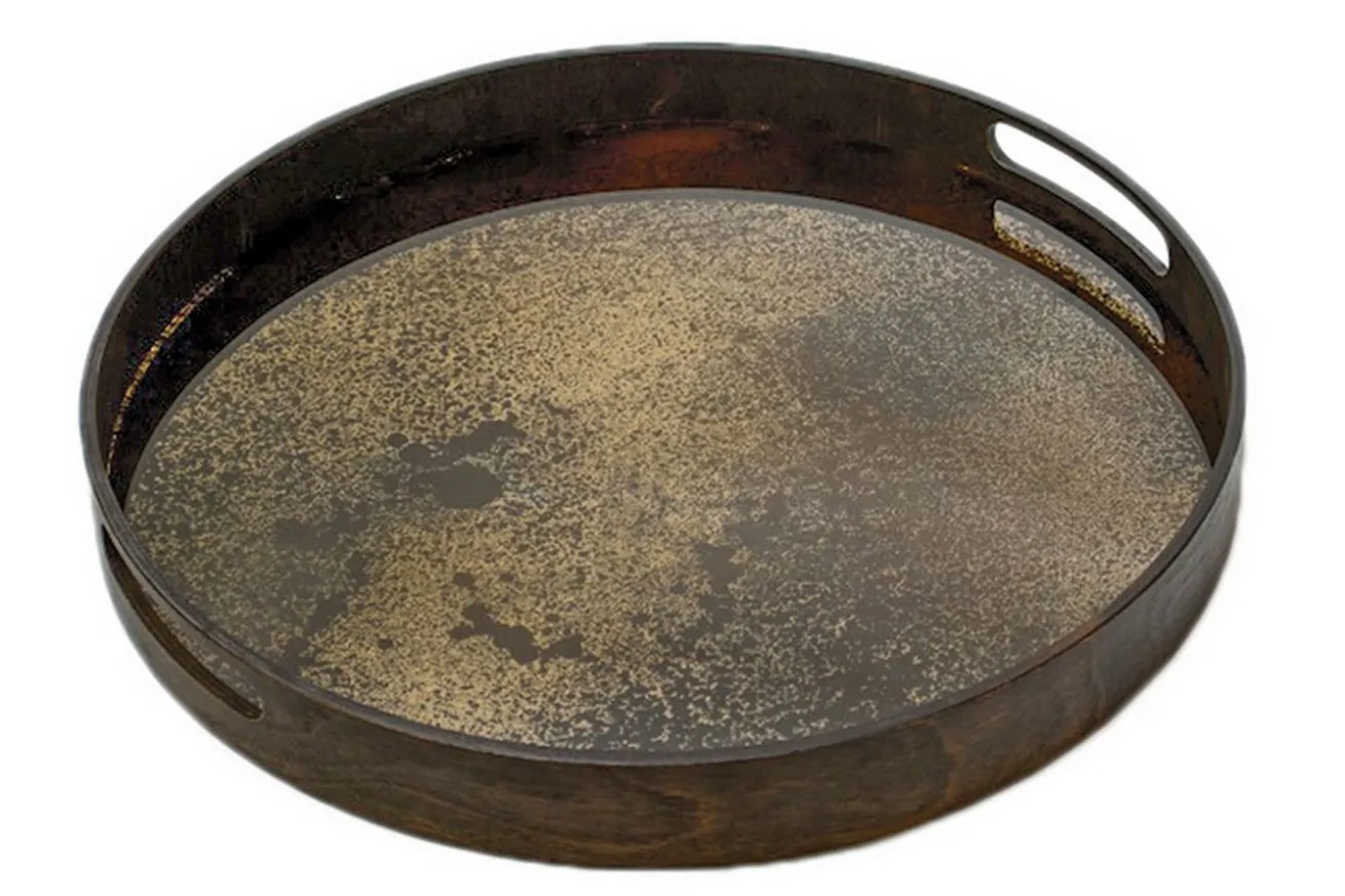 Auch wenn dieses Tablett zum Servieren verwendet werden kann, da der 4cm hohe Holzrand Griffe hat, eignet sich dieses Tray hervorragend zum Dekorieren. Legen Sie es auf einen Beistelltisch, der einen Durchmesser von über 48cm hat und stellen Sie eine Vase oder Kerzen drauf. Der bronzefarbene Spiegel, der als Ablagefläche dient, sorgt für besondere Lichtspiele.