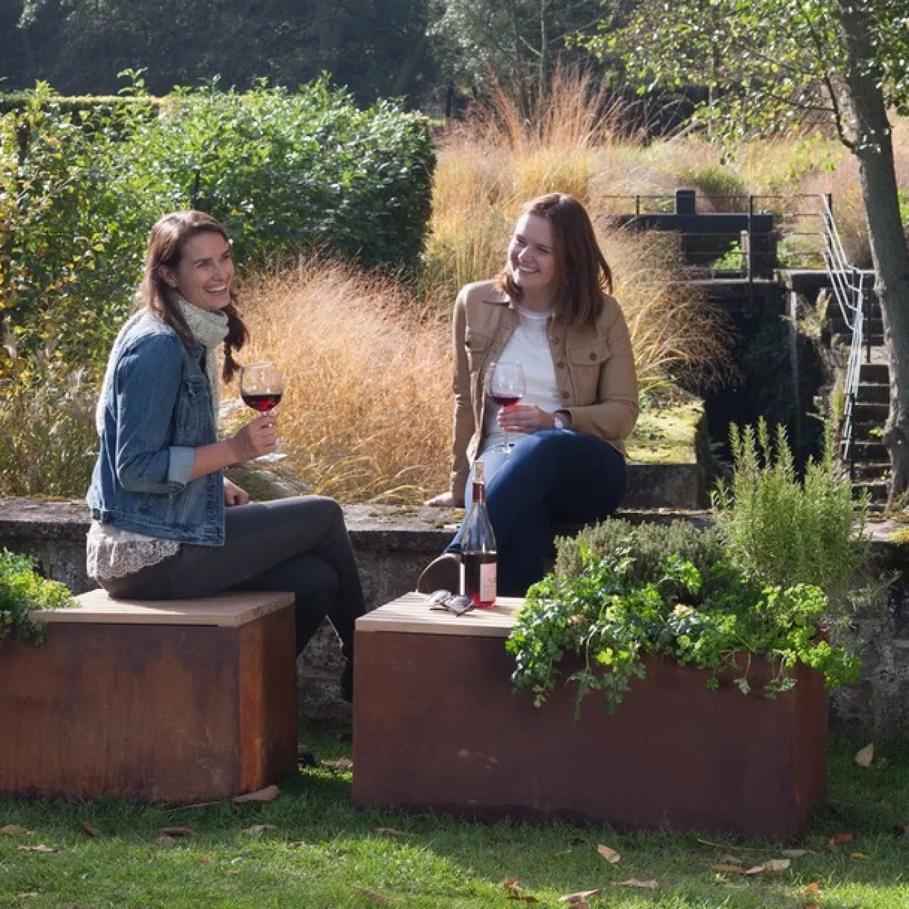 Die edle Rostoberfläche des Stahls geht eine wunderbare Symbiose ein zum Holz und dem Grün der Kräuter. Dekorativer kann Praktisches nicht in Szene gesetzt werden.