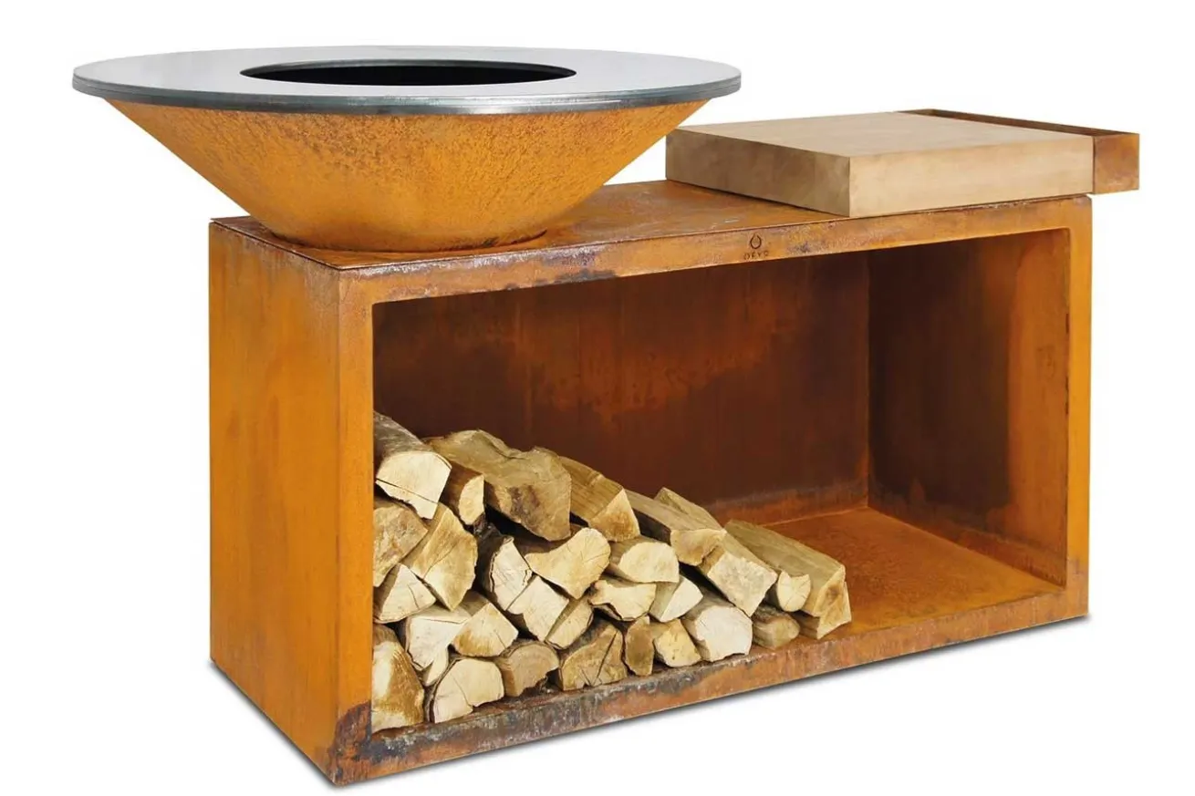 Die Idee des Grillens auf einem OFYR ist einfach: In der Feuerschale lodert ein Holzfeuer. Es schafft Wärme und Faszination. Der breite Rand der Feuerschale ist die Grillfläche. Unterschiedliche Temperaturzonen entwickeln sich automatisch in Abhängigkeit vom Abstand zur Hitzequelle. Sie erlauben es dir, gleichzeitig die verschiedensten Lebensmittel aufzulegen. Durch die Größe der Feuerschale der Durchmesser legt bei ca. 1 Meter hast du einen Grill, mit dem du auch eine große Party schmeißen kannst. Hol dir Helfer an den Grill. Es gibt immer Platz an einer runden Grillplatte. Du musst keine komplizierte Technik erklären. Schürze umbinden und los geht’s.