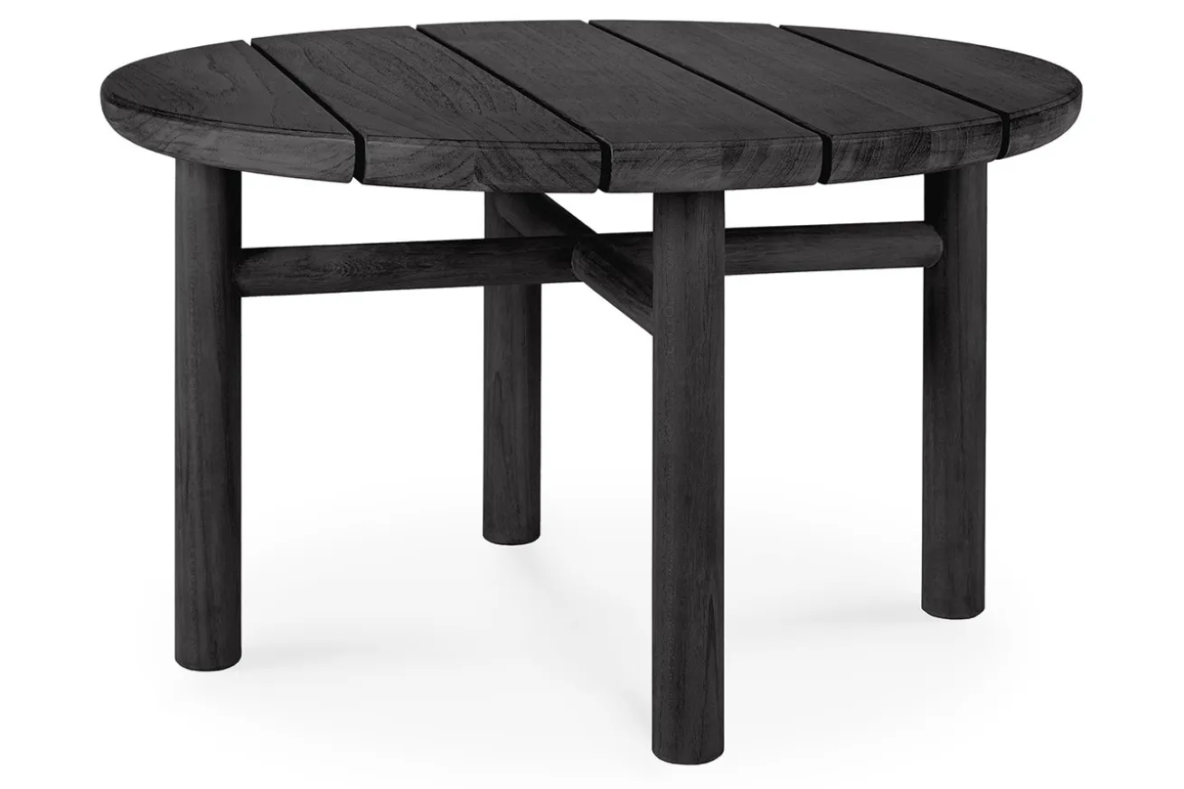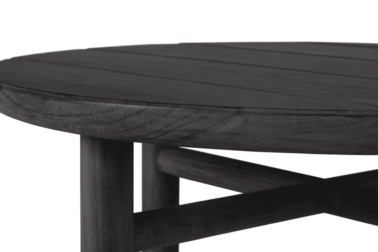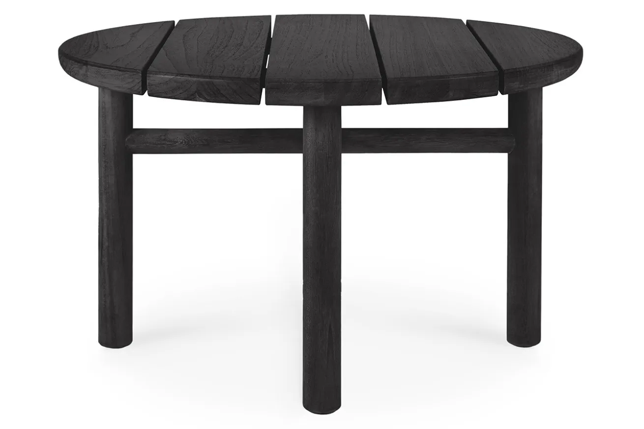 Tauchen Sie ein in die Welt der Eleganz mit unserem runden Outdoor Beistelltisch aus edlem Teakholz, präsentiert in einer zeitlosen schwarzen Farbgebung. Dieses exklusive Möbelstück vereint stilvolles Design mit hoher Funktionalität und verleiht Ihrem Außenbereich einen Hauch von Luxus.
