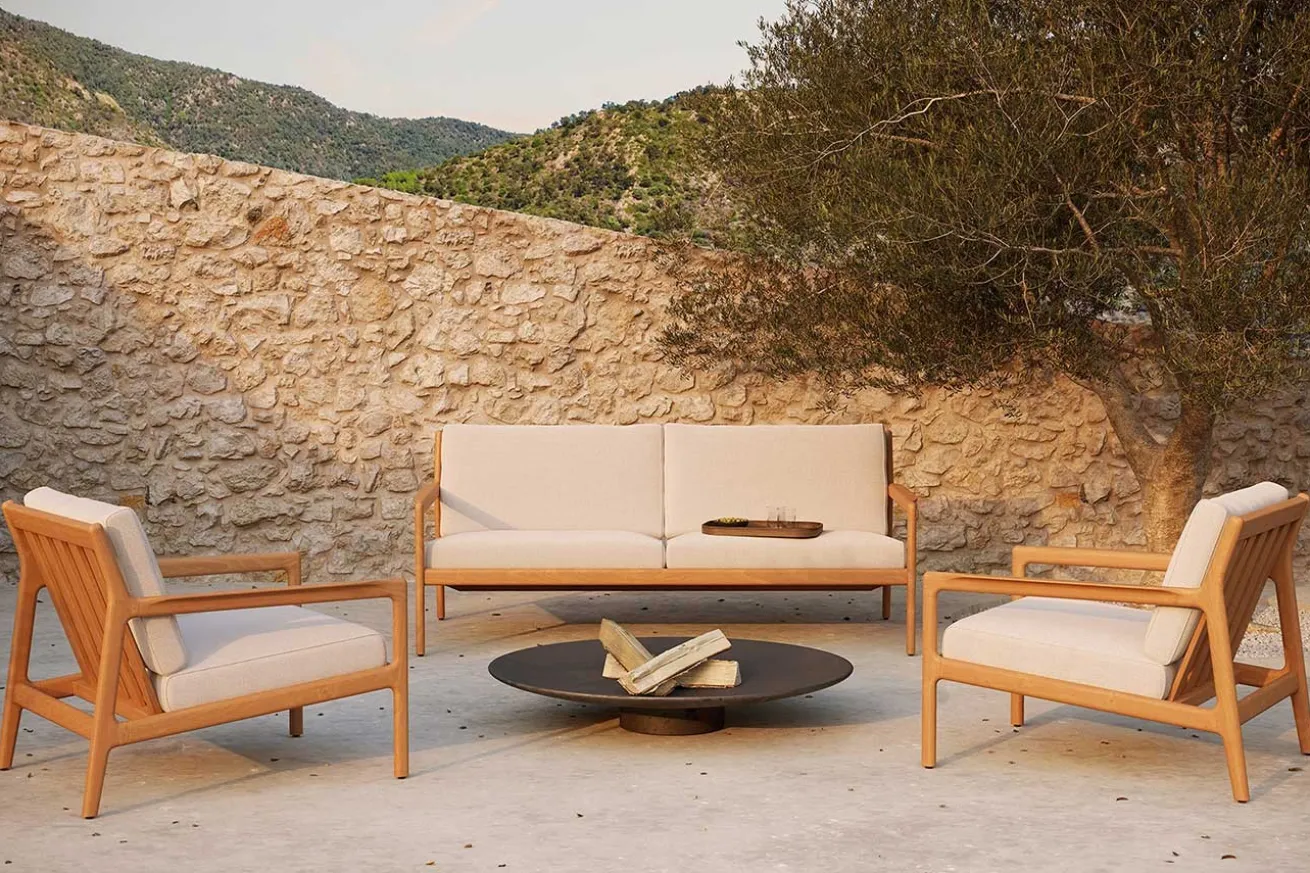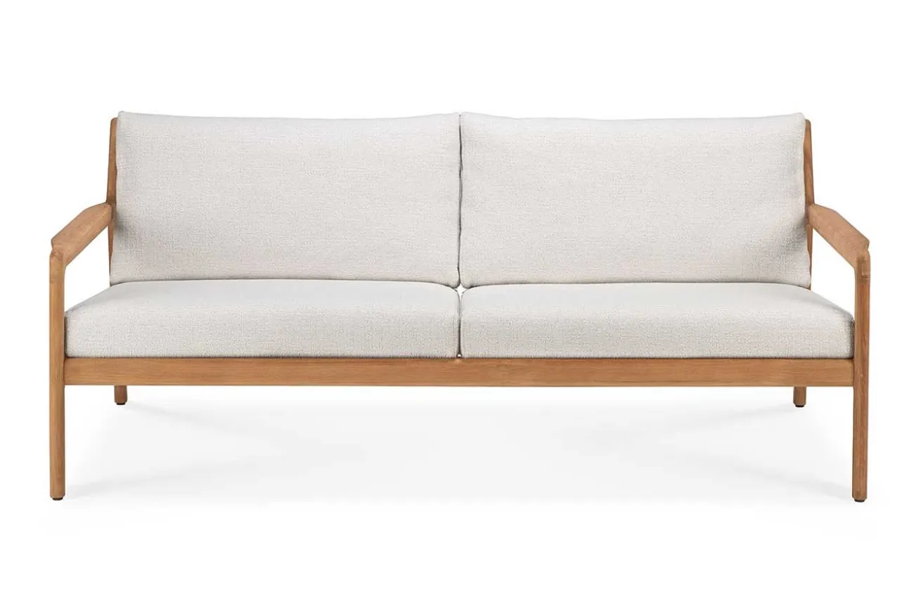 Ein Gartensofa, das zu Ihrem natürlich gehaltenen Garten passt, ist Jack. Der Korpus besteht aus naturfarbenem Teakholz. Gepolsterte Auflagen zum Sitzen und Anlehnen sind aus Polypropylen-Stoff in Off White und verleihen dem Produkt Gemütlichkeit. Mit einer Breite von 180cm, einer Tiefe von 90cm sowie Höhe von 73cm ist der 2-Sitzer für Ihren Garten zum Relaxen und Kaffee trinken hervorragend geeignet. Kombinieren Sie Jack mit weiteren Modellen der Serie von Ethnicraft und richten Sie so einen stilvollen Outdoorbereich her, der an Design und natürlich schönem Ambiente alles übertrifft.