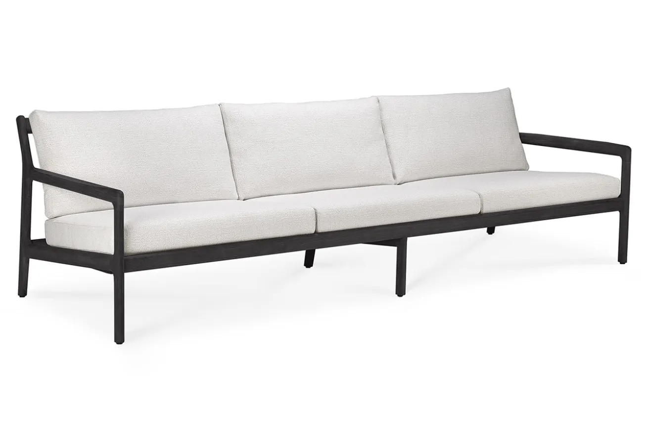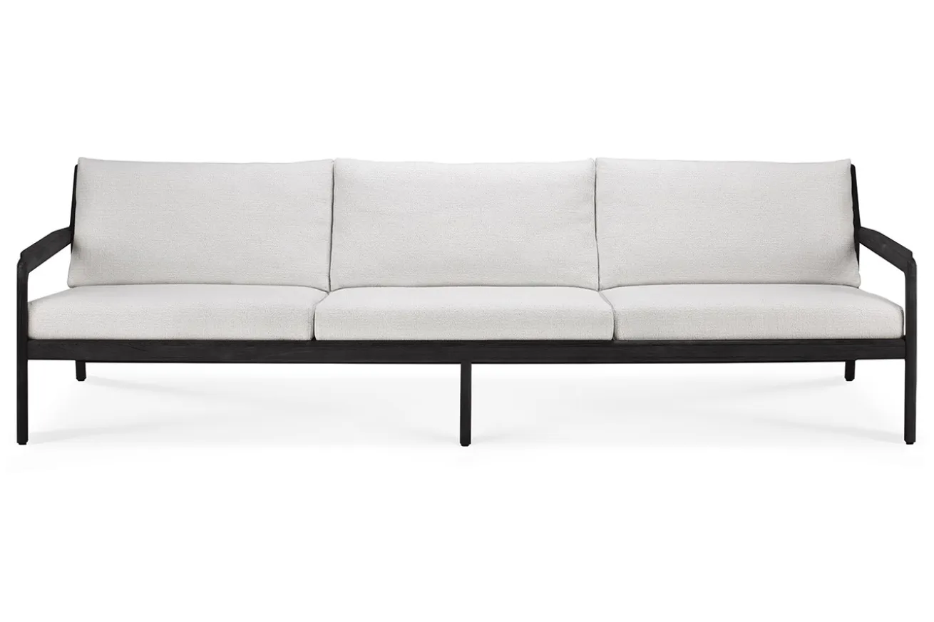 Ein Gartensofa, das zu Ihrer natürlich gehaltenen Gartenanlage passt, ist Jack. Der Korpus besteht aus schwarzem Teakholz. Gepolsterte Auflagen zum Sitzen oder Liegen und Lehnen sind aus Polyproplyen-Stoff in Off White und verleihen dem Möbelstück Bequemlichkeit. Mit einer Breite von 265cm, einer Tiefe von 90cm und einer Höhe von 73cm ist der 3-Sitzer für Ihren Außenbereich zum Entspannen und Kaffee trinken sehr gut geeignet. Stellen Sie Jack mit anderen Sitzmöbeln der Serie von Ethnicraft zusammen und kreieren Sie so einen stilsicheren Outdoorbereich her, der an Aussehen und natürlich schönem Flair alles überragt.