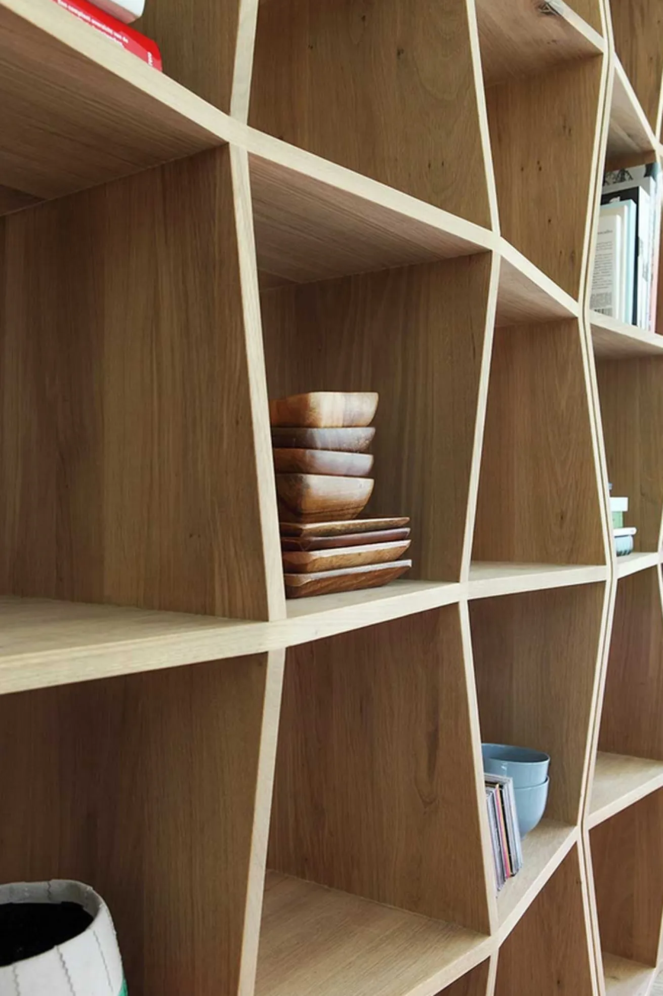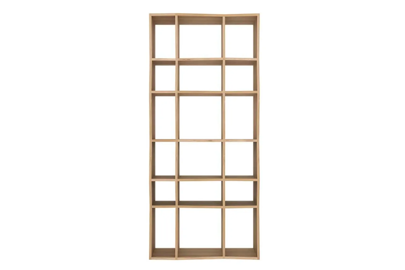 Dieses Holzregal ist aus massivem Eichenholz. Es hat eine Höhe von 207cm, eine Breite von 93cm und eine Tiefe von 38cm. Das Möbelstück besticht durch seine natürliche Farbe mit gleichmäßiger Maserung. Die Oberfläche wurde zusätzlich geölt. Die Besonderheit des Standregals sind die schrägen Böden und 18 vorgefertigten Fächer. Dieses massive Regal aus Eichenholz bietet Ihnen genügend Platz für Ihre Cds, Accessoires und sonstige schöne Dinge. Die geschwungene Form der Regalelemente sind ein echter Blickfang, egal ob man das Regal an eine Wand stellt oder als Raumteiler nutzt.