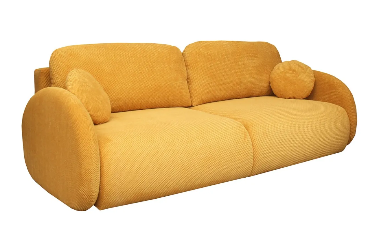 Der strukturierte Stoffbezug fühlt sich angenehm an und ist für den täglichen Gebrauch ausgelegt. Die gelb-orange Farbgebung verleiht dem Sofa eine warme, lebendige Ausstrahlung, ohne aufdringlich zu wirken. Siena eignet sich ideal für Wohnräume, Gästezimmer oder Apartments, in denen Funktionalität und Ausdruck gleichermaßen gefragt sind.