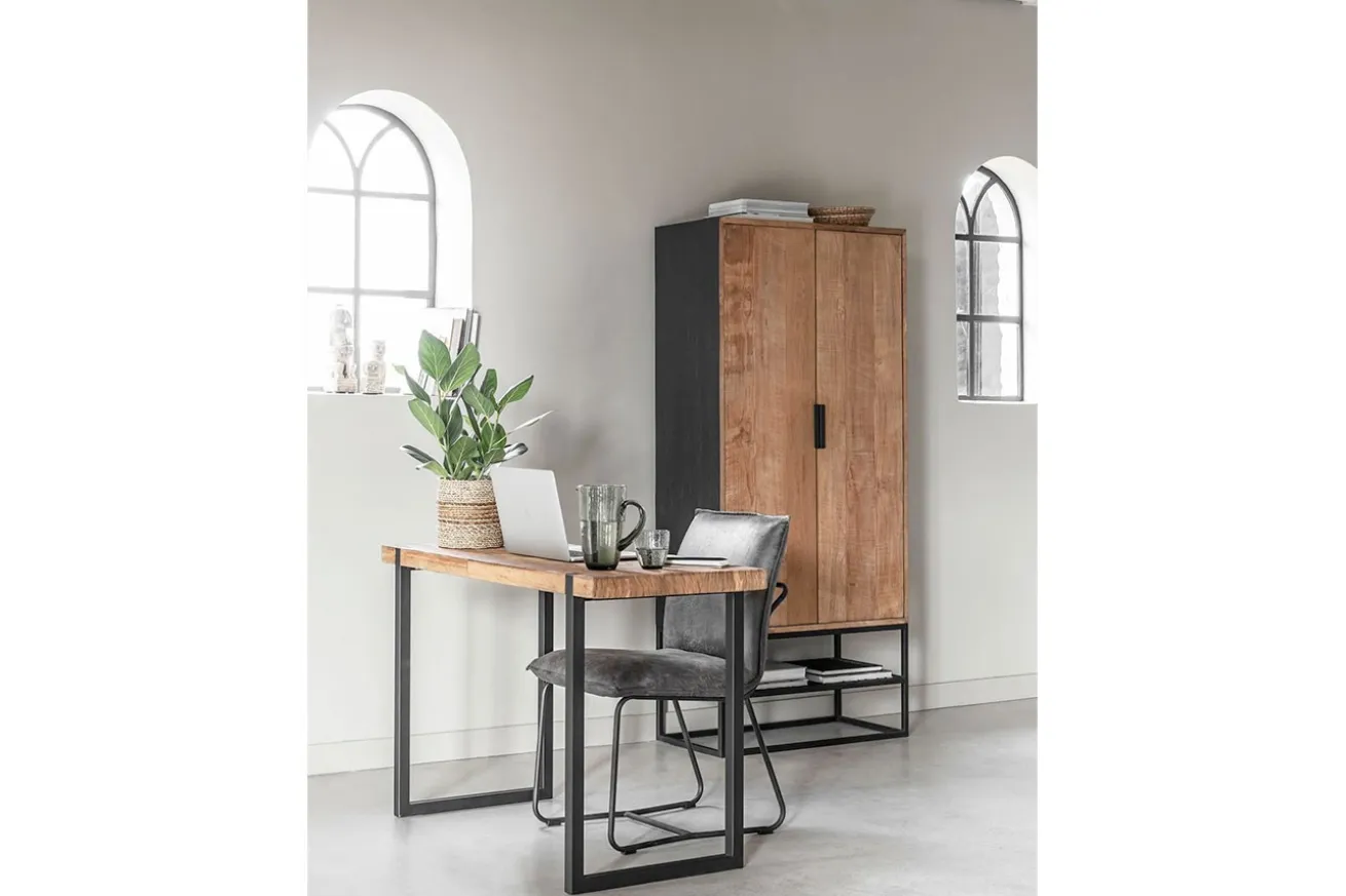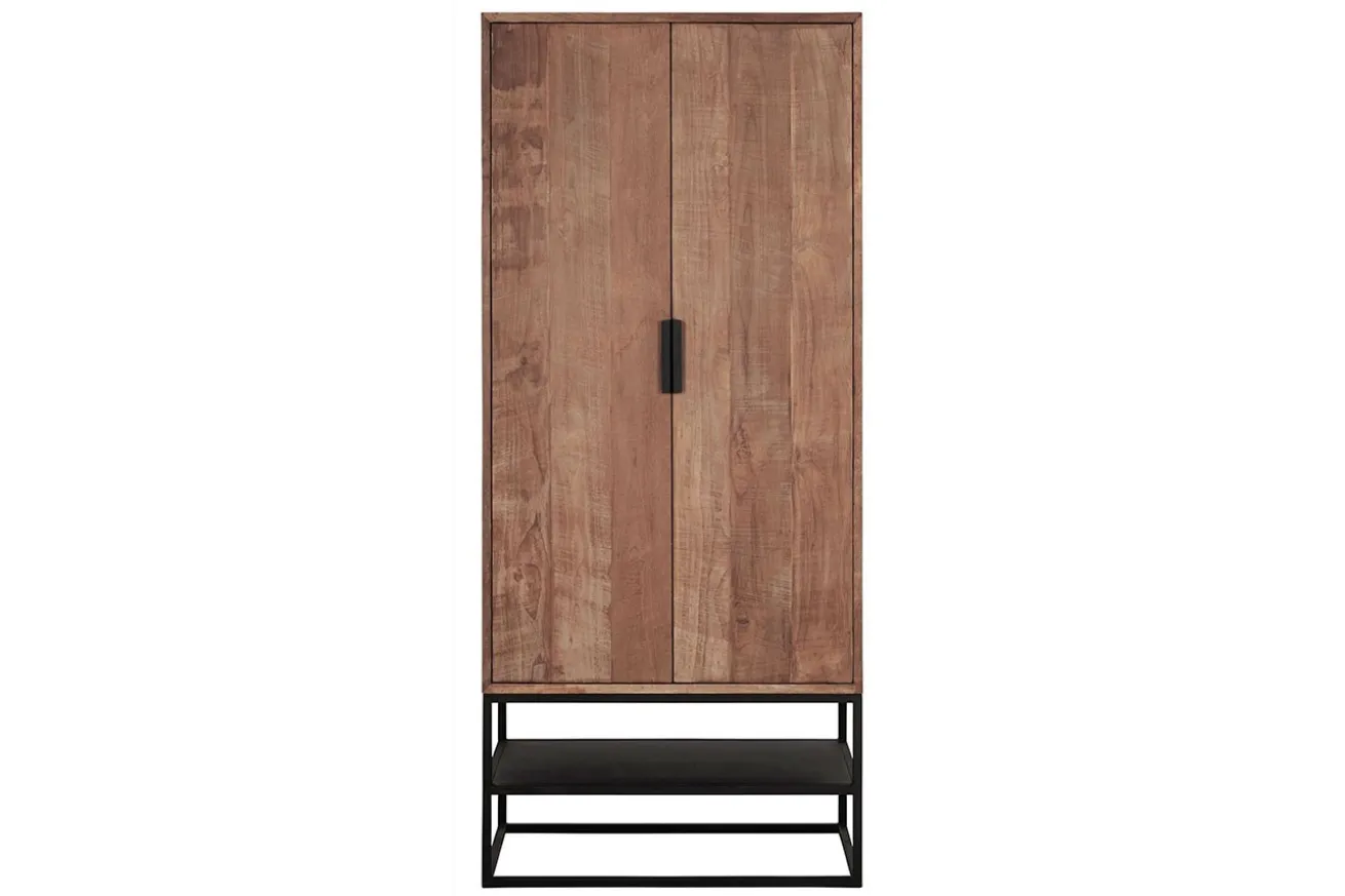 Bei diesem Möbelstück müssen Sie sich gar keine Gedanken machen, dass er nicht in Ihre Wohnung passt, denn mit einer Breite von 80cm ist er schmal genug, um auch in den engsten Flur zu passen. Der Massivholzschrank aus naturfarbenem Teakholz kombiniert mit einem schwarzen Metallgestell dient hervorragend als Schuhschrank, denn unten befindet sich eine Ablage, die zum Fuß gehört. So lässt sich Dreck, den Sie hineingetragen haben, problemlos wegwischen. Oder wie wäre es aber mit Cosmo als Kleiderschrank? Das Innenleben ist mit zwei Einlegeböden aufgeteilt worden und hält viel Platz für Kleidung jeder Saison bereit.