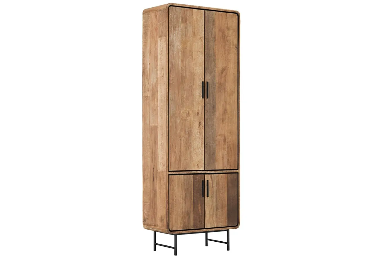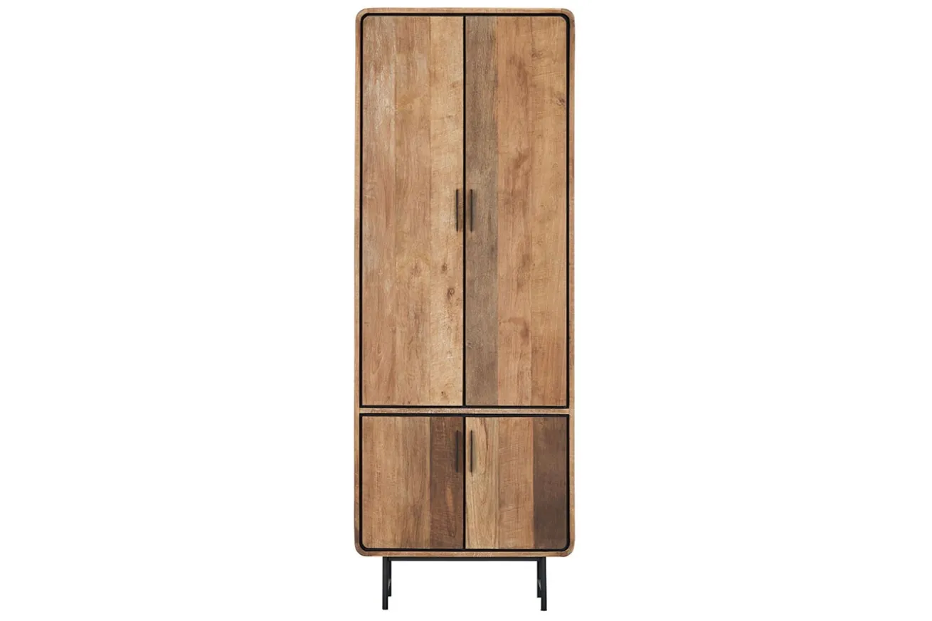 Mit seinen vier Türen bietet dieser Schrank nicht nur reichlich Stauraum, sondern präsentiert sich auch als ästhetisches Highlight in Ihrem Zuhause. Der moderne Ethnostyle wird durch die Kombination aus rustikalem Teakholz und den schlanken Metallfüßen perfekt verkörpert, wodurch ein faszinierender Kontrast entsteht, der den Charme des Schrankes unterstreicht.