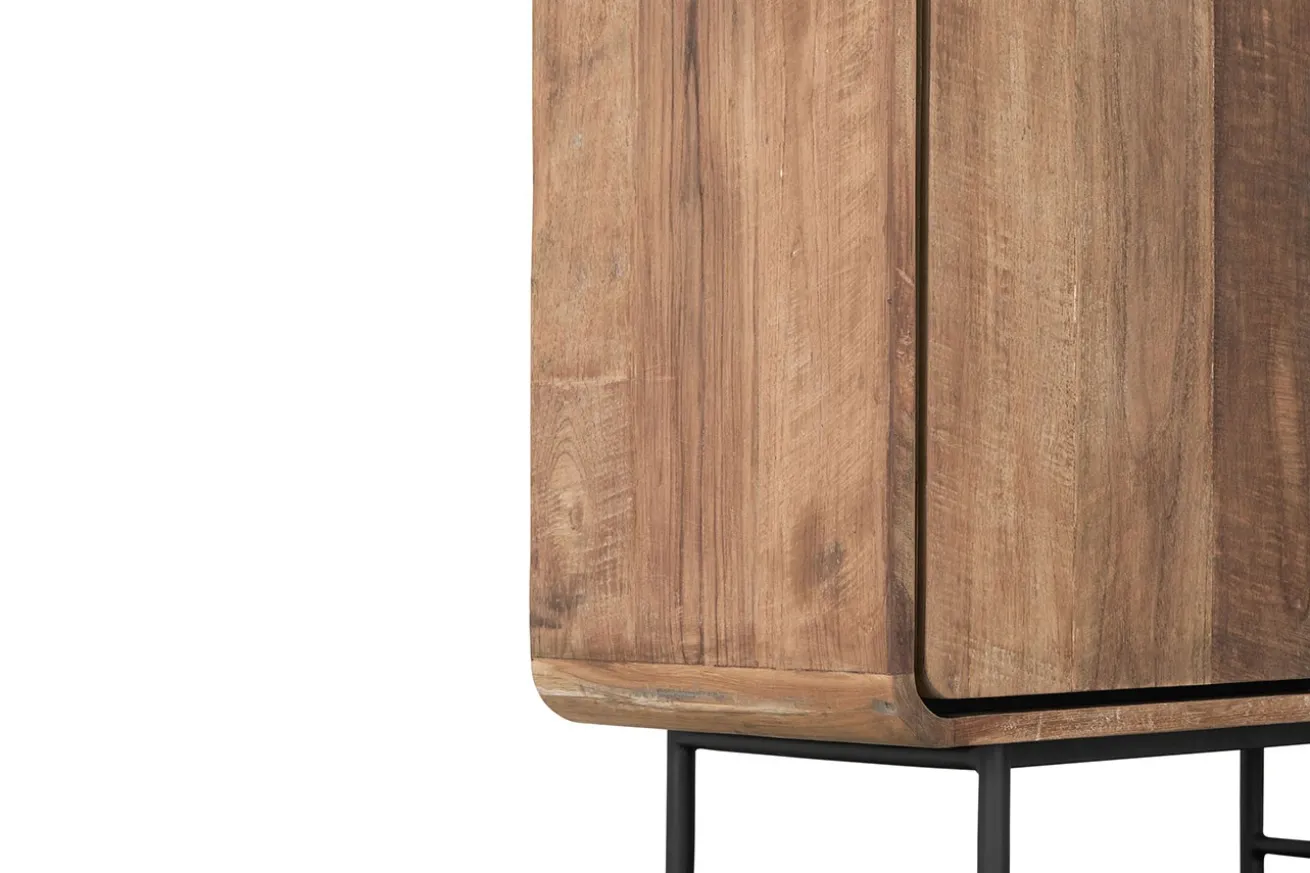 Jedes Stück erzählt eine Geschichte, da es aus sorgfältig ausgewähltem recyceltem Teakholz gefertigt ist, das ihm eine warme und natürliche Ausstrahlung verleiht. Die filigranen Metallfüße in eleganter Schwarzoptik verleihen diesem Schrank einen modernen Touch und sorgen für eine schwebende Leichtigkeit in Ihrem Raum.