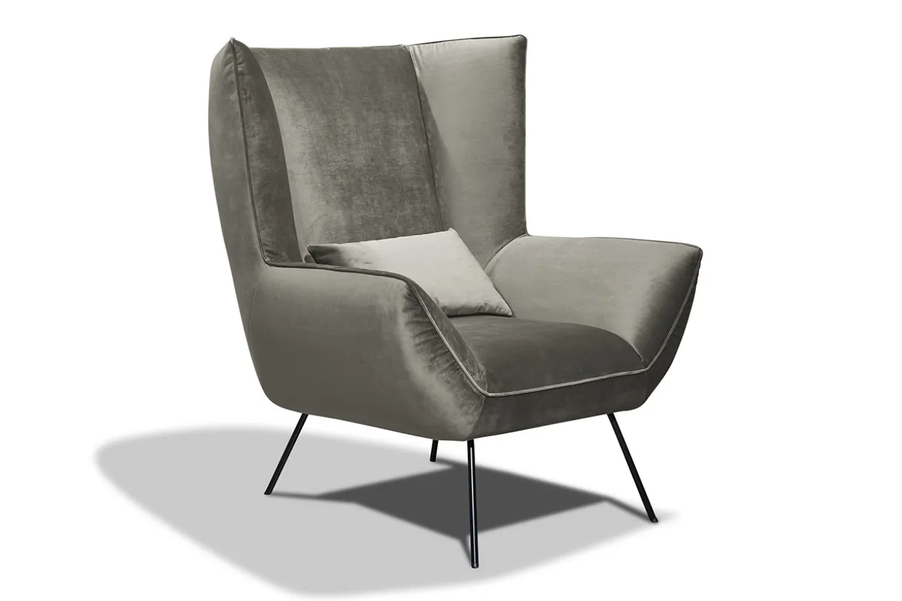 Ohrensessel, Bezug Samt blau, Beine Metall schwarz