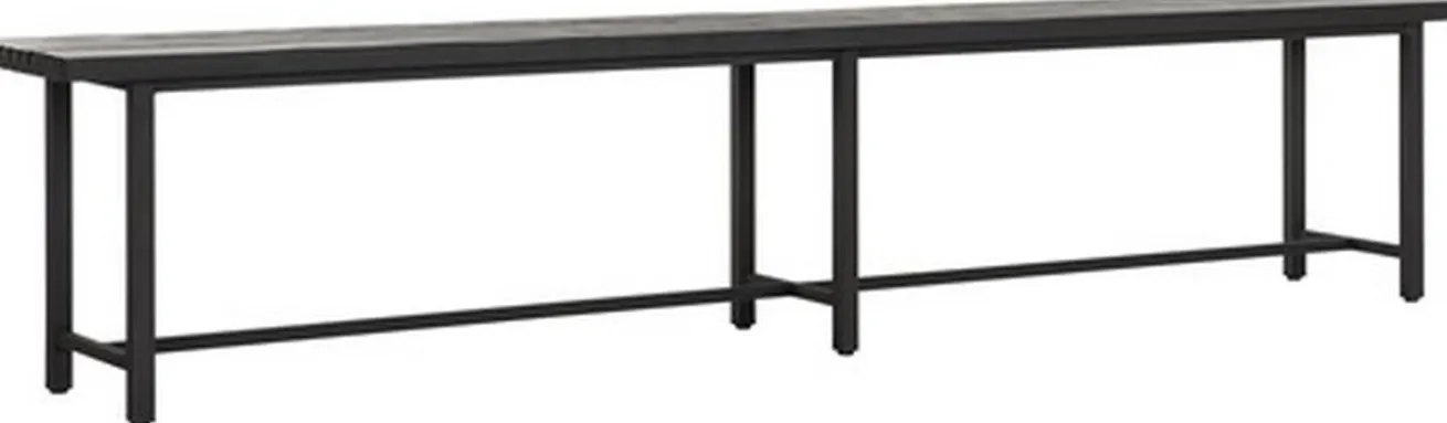 Die markante U-förmige Metallbasis in schwarzem Finish verleiht der Bank Stabilität und modernen Charme. Die klaren Linien und das zeitgemäße Design der Basis harmonieren perfekt mit dem rustikalen Teakholz, was zu einem beeindruckenden Gesamtbild führt.