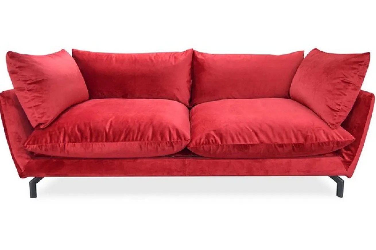 Unser gemütliches zierliches Samtsofa lädt zum Kuscheln und Verweilen ein. Machen Sie es sich mit einem interessanten Buch oder einem Glas Wein gemütlich, denn die legere Polsterung und die kuscheligen Kissen laden dazu ein. Mit einer Breite von 210cm und einer Tiefe von 109cm bietet Donna genügend Platz, um die Beine hochzulegen. Das rote Sofa für Ihr Wohnzimmer hat eine Höhe von 58cm, welche sich unter anderem durch die Metallfüße erschließt. Eine weiche Couch aus rotem legerem Samtbezug und gemütlicher Polsterung rufen förmlich danach, sich zu setzen und inne zu halten. Ein modernes Produkt, das dank seiner knalligen Farbe auf jeden Fall zum Hingucker in Ihrer Einrichtung wird.
