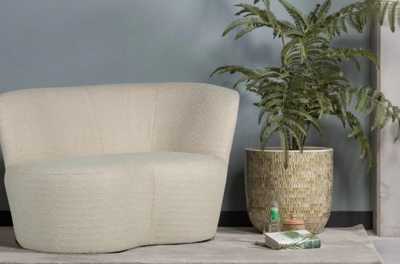 Mit ihren weichen, abgerundeten Formen und dem angenehmen Struktursamt (100 % Polyester) lädt diese Bank zum Entspannen ein.