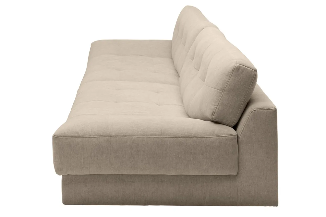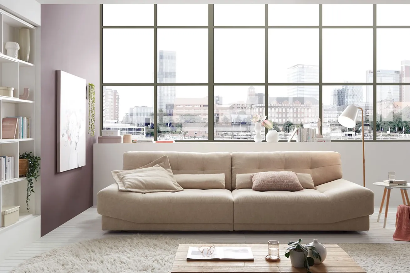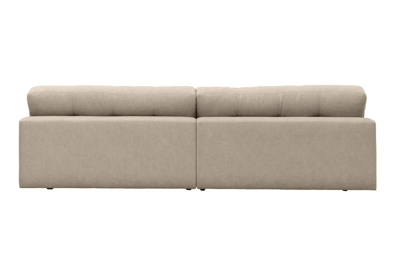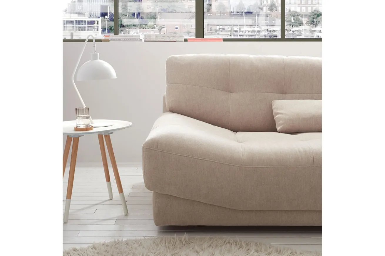 Mit seiner großzügigen Sitzfläche bietet das Sofa ausreichend Platz für Sie und Ihre Lieben, um gemütliche Abende zu verbringen oder gesellige Zusammenkünfte zu genießen. Die weichen und dennoch strapazierfähigen Stoffpolster in Champagner verleihen Ihrem Wohnraum eine elegante Note und lassen das Sofa in jedem Interieur strahlen.