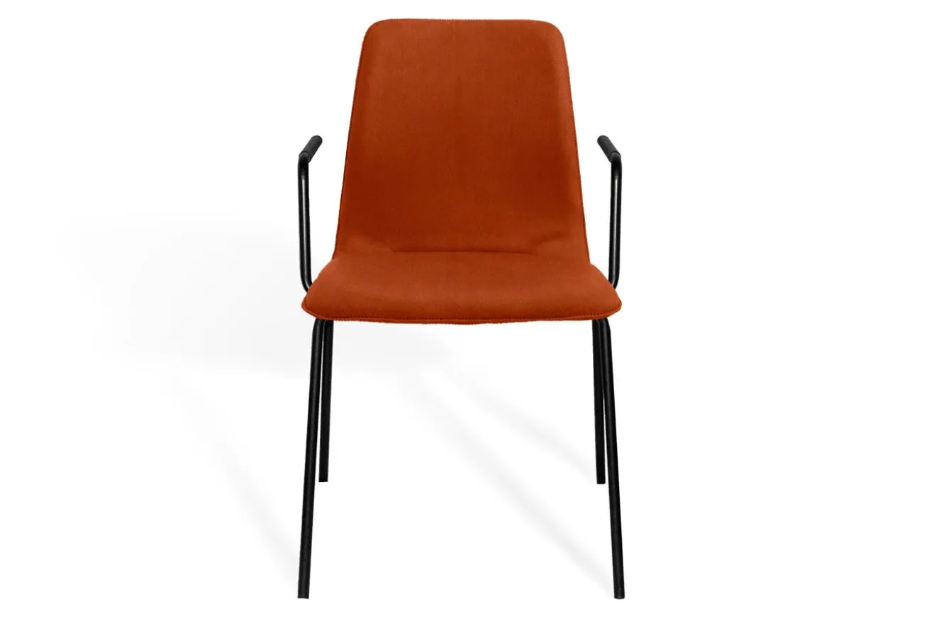 Das stabile 4-füßige Rundrohrgestell in elegantem Schwarz sorgt für eine robuste Basis und verleiht dem Stuhl eine zeitlose Eleganz. Die komfortablen Armlehnen fügen sich perfekt in das Design ein und bieten zusätzlichen Halt und Entspannung, ideal für längere Sitzungen im Esszimmer oder im Büro.
