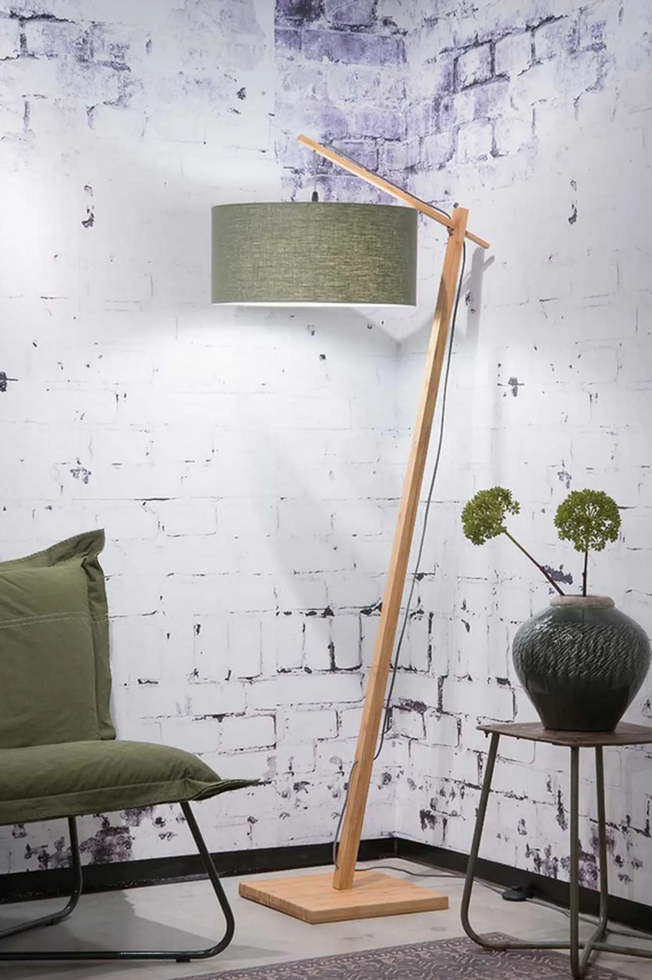 Diese Stehleuchte ist ein etwas anderer Hingucker. Der Ständer besteht aus Bambusholz, der einen Lampenschirm aus grünem Leinen trägt. Diese Farbzusammensetzung und Kombination der Materialien erinnert nicht nur an die Natur, sondern passt perfekt zum skandinavischen Stil. Ob sie nun im modernen Millieu neben Ihrem runden Polsterstuhl steht und als Leselampe dient oder im Schlafzimmer als Bogenlampe mehr Helligkeit für den Raum bietet, ist ganz gleich. Licht ist Licht und mit dieser Stehlampe wird die Funktion durch das Aussehen unterstrichen.