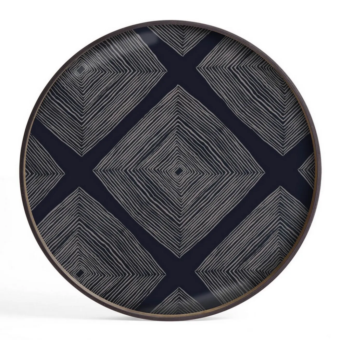 Für dekorative Zwecke eignet sich immer ein Tablett. Ob rund oder eckig, das spielt keine Rolle. Von Wichtigkeit ist das Design und Ihr Geschmack. Können wir Sie von Squares überzeugen? Es handelt sich hierbei um dieses runde Tablett mit einem Durchmesser von 61cm. Dieses Accessoire gewinnt uns durch das von Hand gemalte lineare Muster aus grauen Quadraten auf schwarzem Hintergrund. So kommt das Eckige ins Runde! Mit einem dunklen, 4cm hohen Rand aus Holz lässt sich Squares nicht nur zum ordentlichen Aufräumen am Schminktisch legen, sondern Sie können das Tablett auch als Platte in Kombination mit einem runden Tischgestell derselben Firma verwenden und so einen Beistelltisch kreieren. Dawn Sweitzer ist ein Künstlerin mit einem exklusivem Stilbewusstsein. Die Gründerin von NOTRE MONDE wird inspiriert auf ihren ausgedehnten Reisen auf der ganzen Welt und von den einfachen Dingen um sie herum. Sei es ein Lied, ein Buch, Mode, die Textur eines Gemäldes oder Menschen, die sie liebt, ihre Umgebung ist ihre Inspirationsquelle. Sie wählt Dinge aus, die direkt mit ihr sprechen und verleiht ihrer Arbeit Authentizität. Die Marke NOTRE MONDE ist ein direkter Ausdruck von Dawns Eintauchen in verschiedene Kulturen.