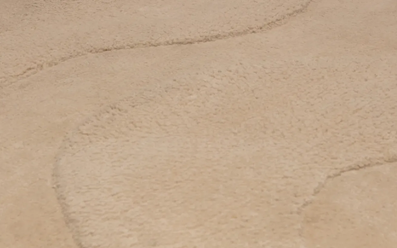 Setze stilvolle Akzente mit diesem außergewöhnlichen Teppich in sanftem Beige. Die organische Form und die geschwungenen Linien schaffen eine moderne, zugleich harmonische Atmosphäre in jedem Raum. Gefertigt aus 100% Polyester, überzeugt der Teppich durch Pflegeleichtigkeit und Langlebigkeit.