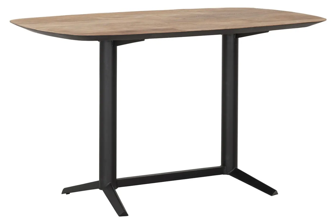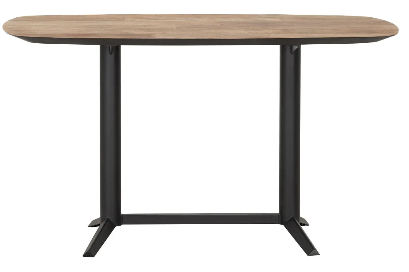 Getragen wird die Tischplatte von einem robusten, 2-füßigen Metallgestell in Schwarz, das nicht nur für Stabilität sorgt, sondern auch einen markanten industriellen Akzent setzt. Die klare Linienführung und das minimalistische Design des Gestells harmonieren perfekt mit der rustikalen Eleganz des Teakholzes und schaffen ein ausgewogenes Gesamtbild. Bringen Sie mit unserem Thekentisch im Industrial-Stil aus recyceltem Teakholz und Metallgestell in Schwarz zeitlose Eleganz und modernen Chic in Ihr Zuhause und schaffen Sie einen Bereich, der zum Entdecken, Genießen und Verweilen einlädt.