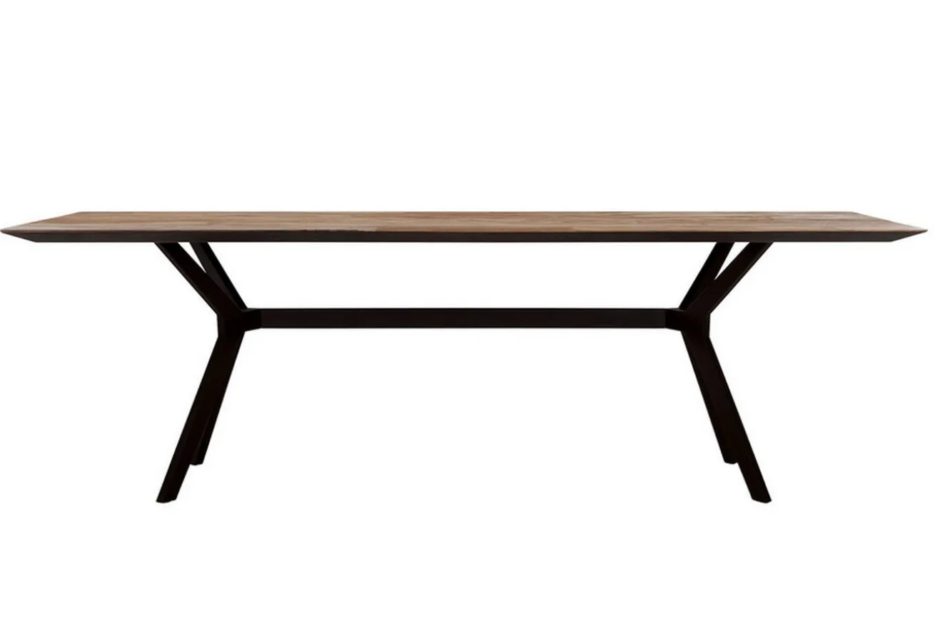 Unser Esstisch besteht aus recyceltem Teakholz und hat ein Gestell mit konischen Beinen in Bumerangform. Die Tischplatte wird an allen Kanten schmaler, schweizer Kante und hat abgerundete Ecken. Die Größen der verfügbaren Esstische sind 200cm, 225cm, 250 cm. Sprechen Sie uns an.
