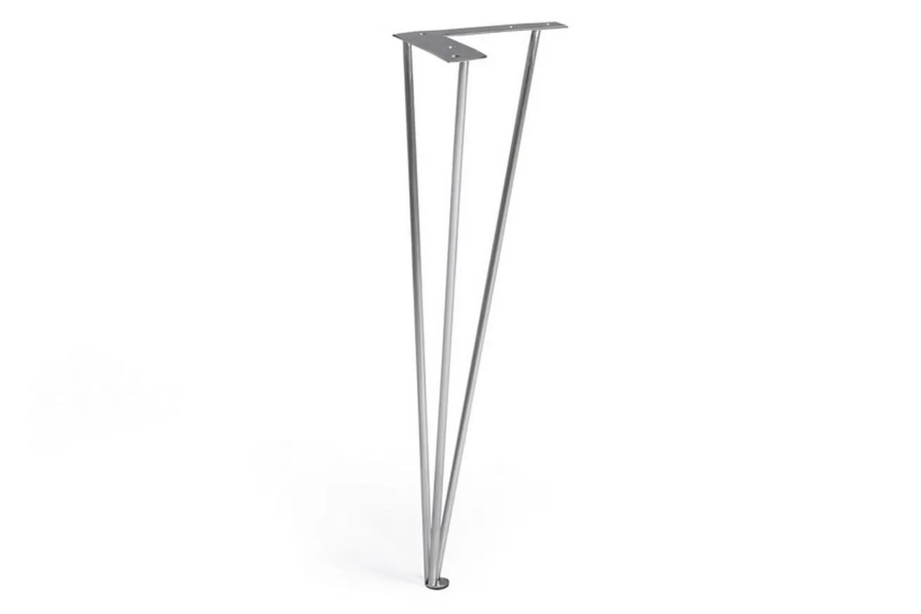 Dieses Tischbein aus silbernem Edelstahl kommt im 4er-Set und hat sowohl eine Breite als auch Tiefe von 22cm und eine Höhe von 73cm. Die Tischkufen, die aus drei Stäben besteht, die unten zusammenlaufen, passen zu Tischplatten und in Einrichtungen im modernen oder industriellen Stil, wo Natur auf moderne Einrichtung trifft.