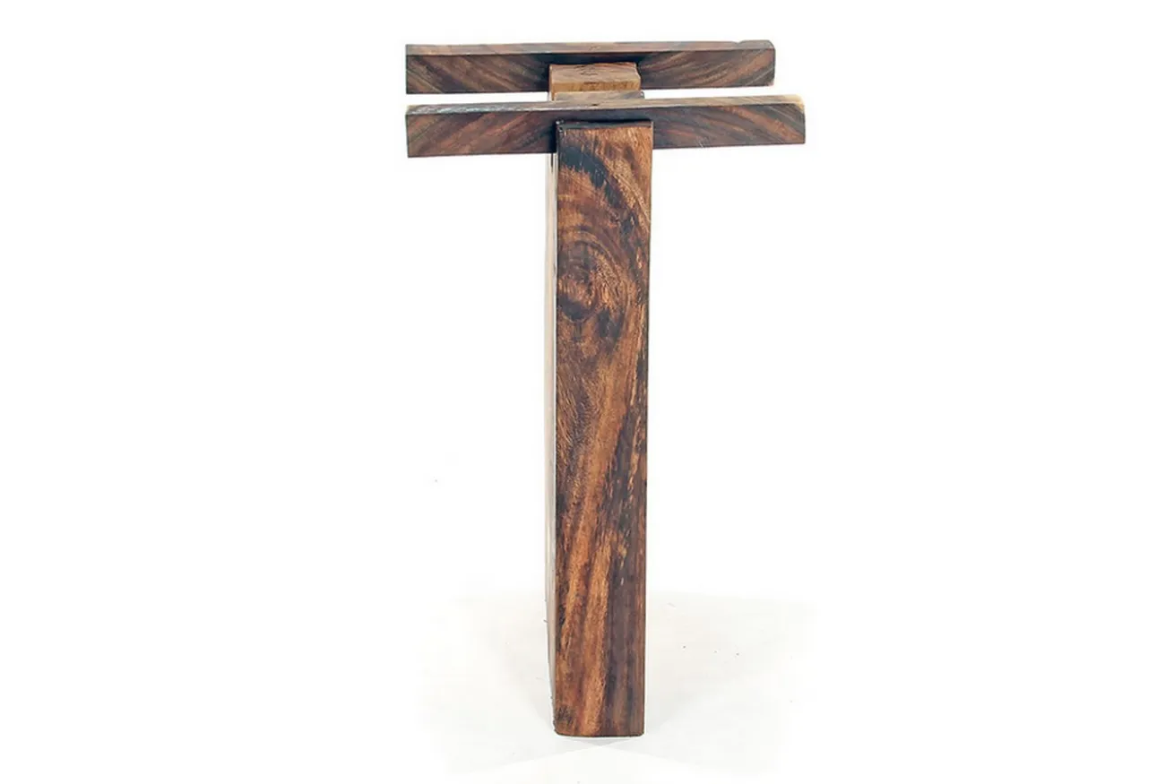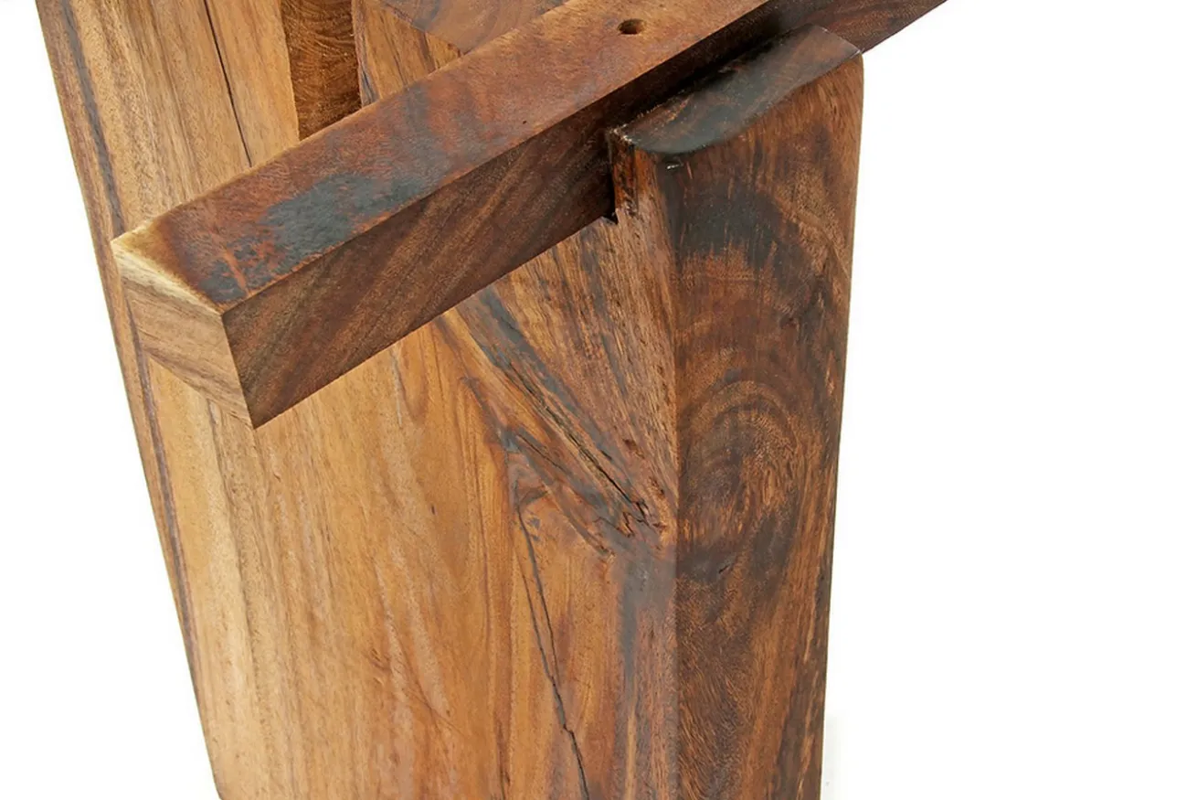 Die Holzwange hat eine Höhe von 65,5cm, eine Breite von 40cm sowie eine Tiefe von 10cm. Sie ist aus Suarholz, einer Akazienart und kommt in ihrer Naturfarbe daher. Die Oberfläche wurde geölt.
