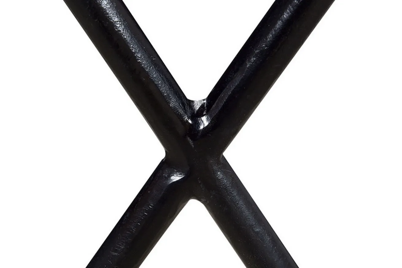 Die Tischkufe verläuft schräg nach oben wie ein X mit zwei Senkrechten an den Seiten. Das Produkt ist handgefertig und kann daher von den angegebenen Maßen abweichen.