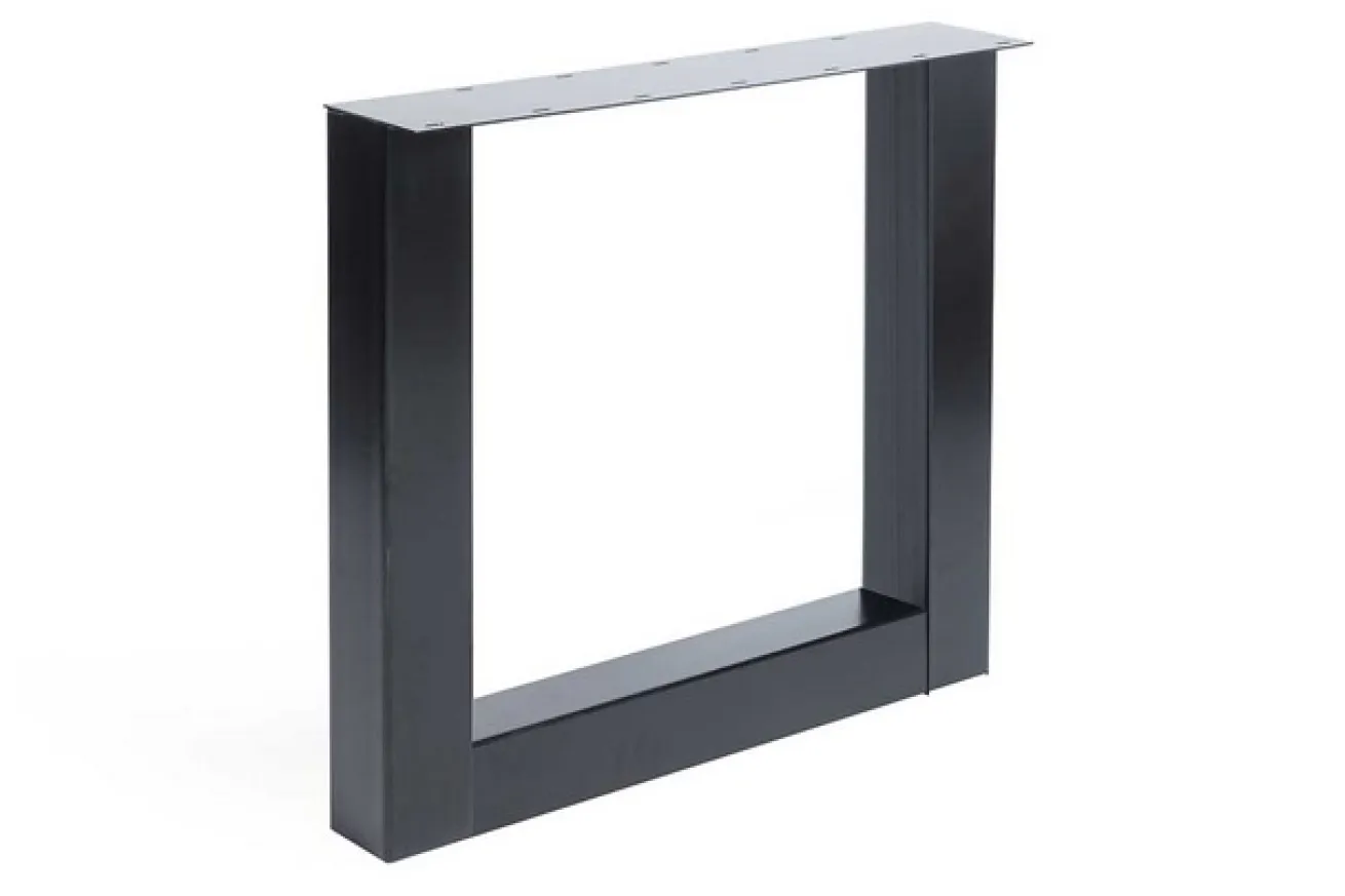 Das rechteckige Tischbein ist aus Stahl und schwarz pulverbeschichtet. Mit einer Breite von 78cm, einer Höhe von 72cm und einer Tiefe von 10-17cm handelt es sich um einen äußerst schweren und stabilen Fuß. Zudem befindet sich oben eine Montageplatte aus Stahl, die eine Zusammenführung von Fuß und Tischplatte vereinfacht.
