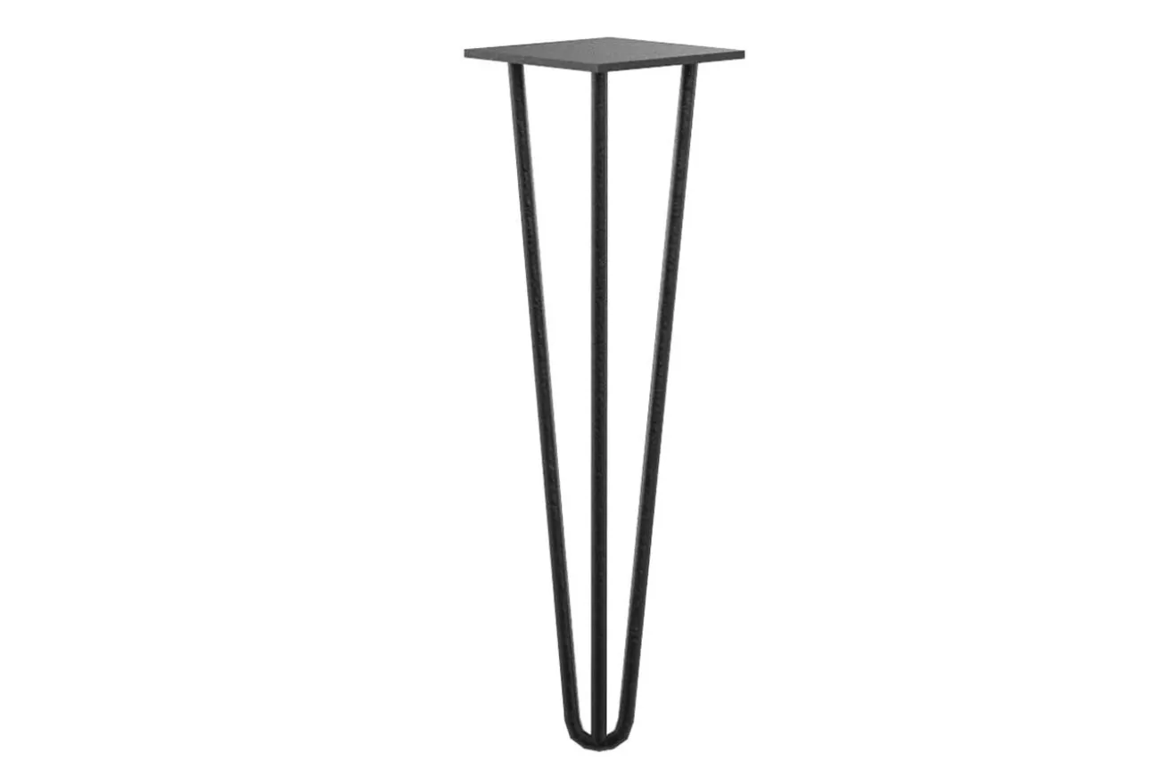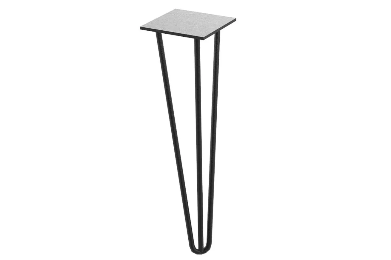 Dieses Tischbein ist aus Rundrohr gefertigt und besteht aus drei dünnen Stangen, die in der Mitte nach unten zusammenlaufen.