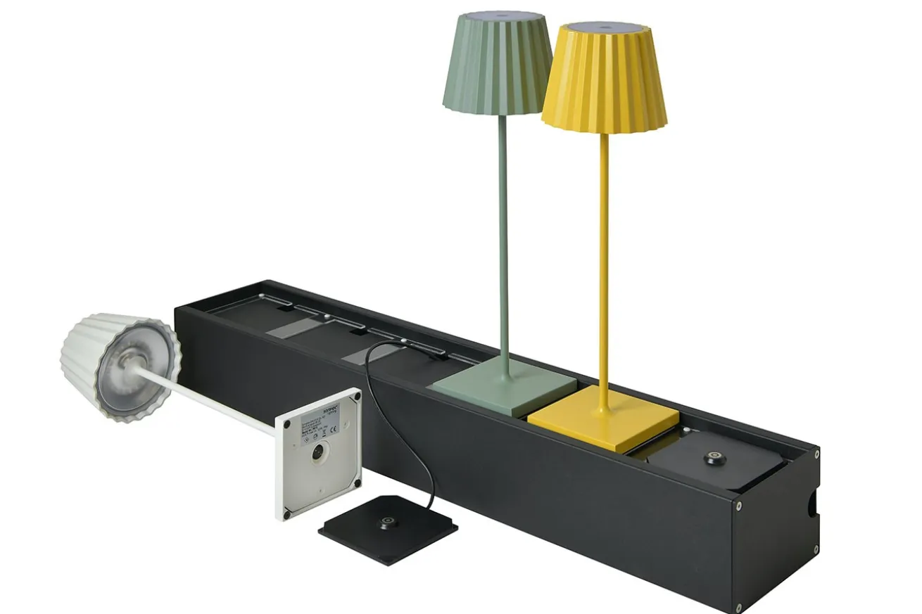 Bei warmen Wetter in den Abendstunen lässt es sich gerne und lange draußen sitzen. Damit man nicht im Dunkeln tiefgründige Unterhaltungen führen muss, sollte eine Lampe her. Sie stehen nicht so auf Girlanden? Wie wäre es mit dieser Tischlampe aus Aluminium in Gelb, die vor allem für den Garten- und Terrassenbereich kreiert wurde. Draußen darf sich das Leben nun auch im modernen Stil abspielen. Die Lampe hat zwei Leuchtstufen, ist daher dimmbar und eine Akku Laufzeit von ca 12. Stunden. Zudem besitzt sie eine Ladestation mit Kabel.