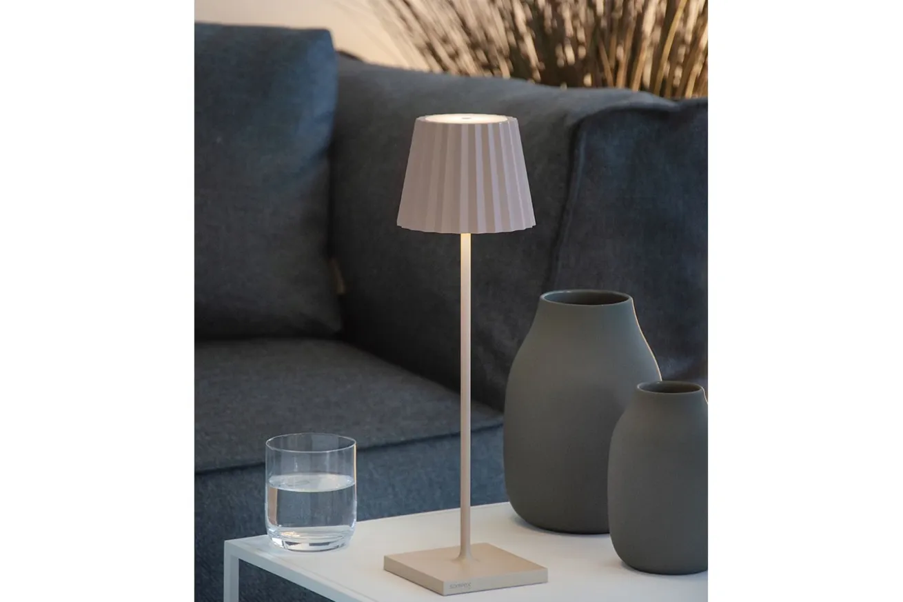 Bei warmen Wetter in den Abendstunen lässt es sich gerne und lange draußen sitzen. Damit man nicht im Dunkeln tiefgründige Unterhaltungen führen muss, sollte eine Lampe her. Sie stehen nicht so auf Girlanden? Wie wäre es mit dieser Tischlampe aus Aluminium in Rosa, die vor allem für den Garten- und Terrassenbereich kreiert wurde. Draußen darf sich das Leben nun auch im modernen Stil abspielen. Die Lampe hat zwei Leuchtstufen, ist daher dimmbar und eine Akku Laufzeit von ca 12. Stunden. Zudem besitzt sie eine Ladestation mit Kabel.